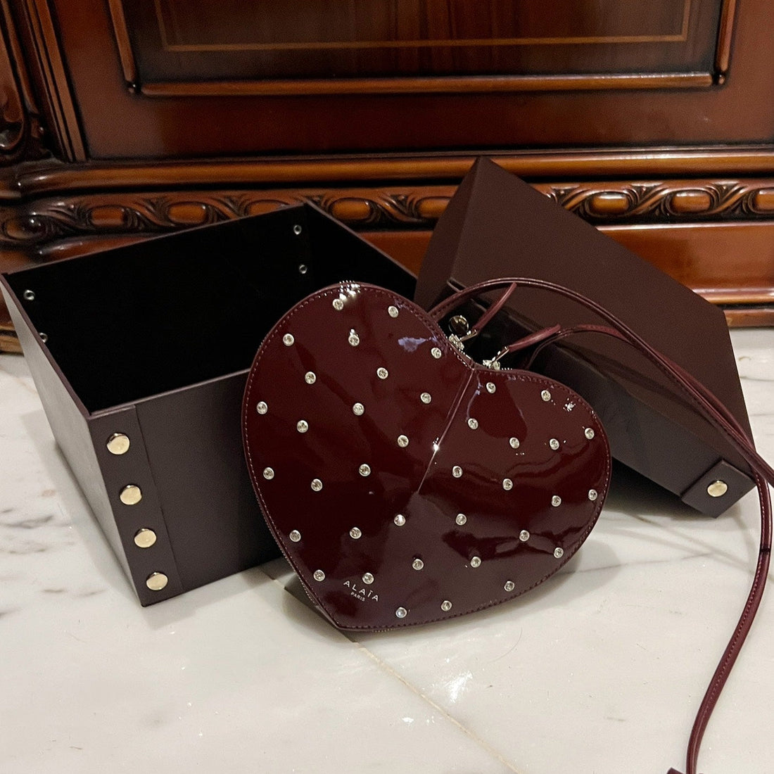 Le Coeur 21cm Burgundy Metal Rivet Calfskin Shouder 243047