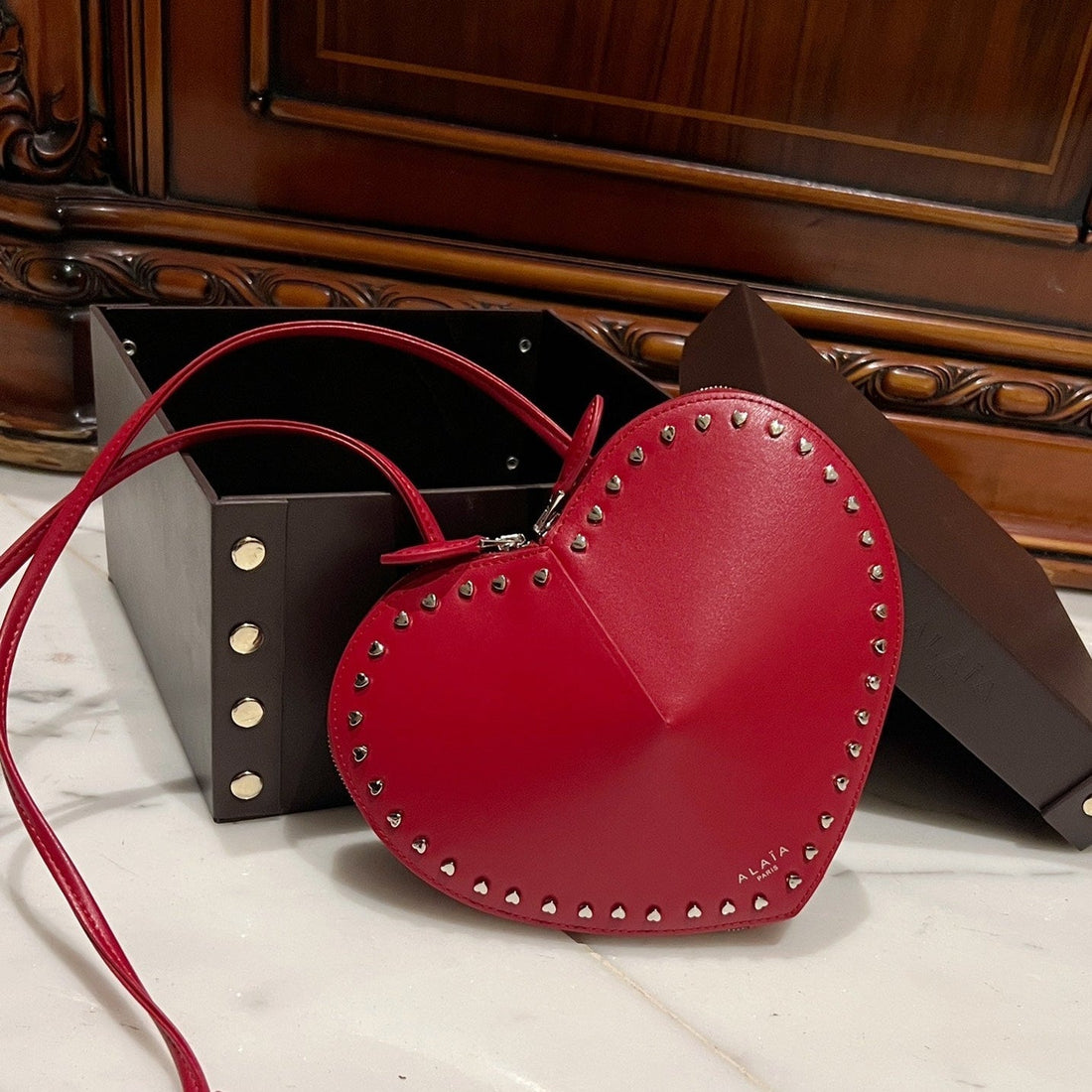 Le Coeur 21cm Red Metal Rivet Calfskin Shouder 243049