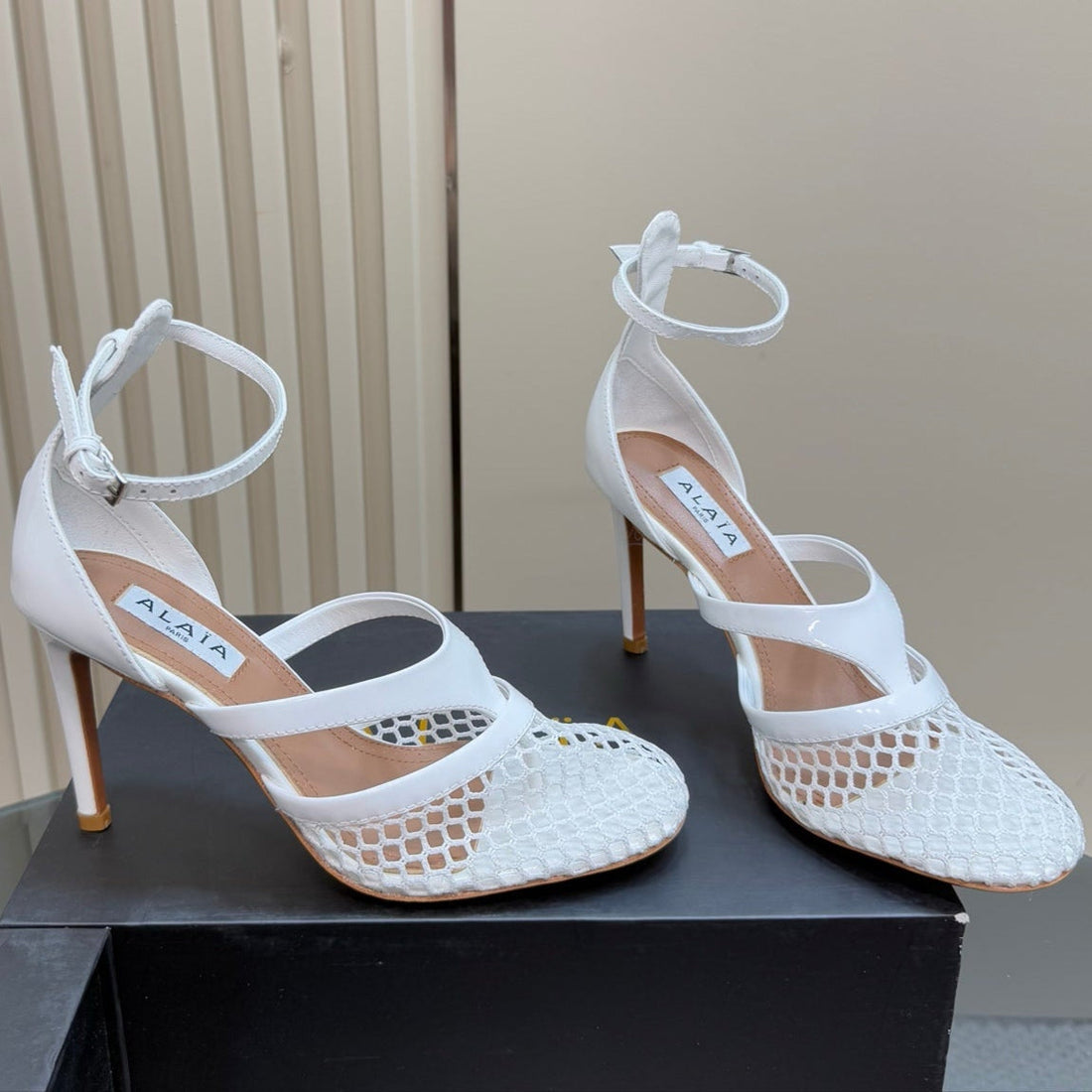 Alaia Fishnet Thong Heels Sandals White Lambskin 299659