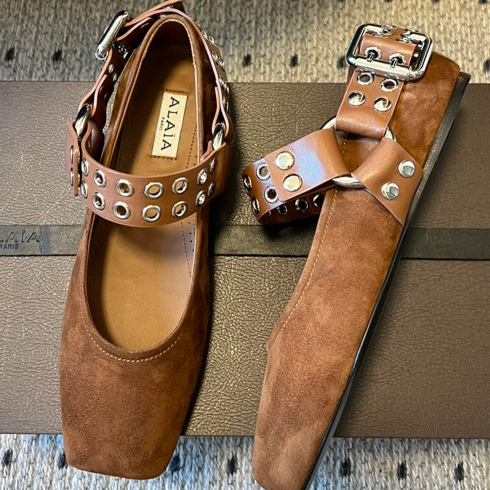 Alaia 25 Biker Ballet Flats Brown Chocolate Suede 303730