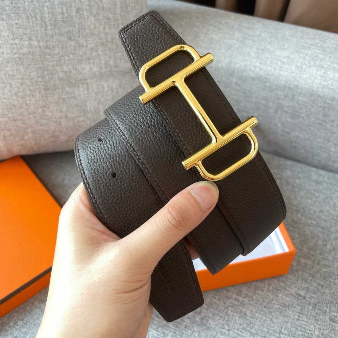 H BELT GOLD BUCKLE 3.5 MM SMOOTH BROWN LEATHER