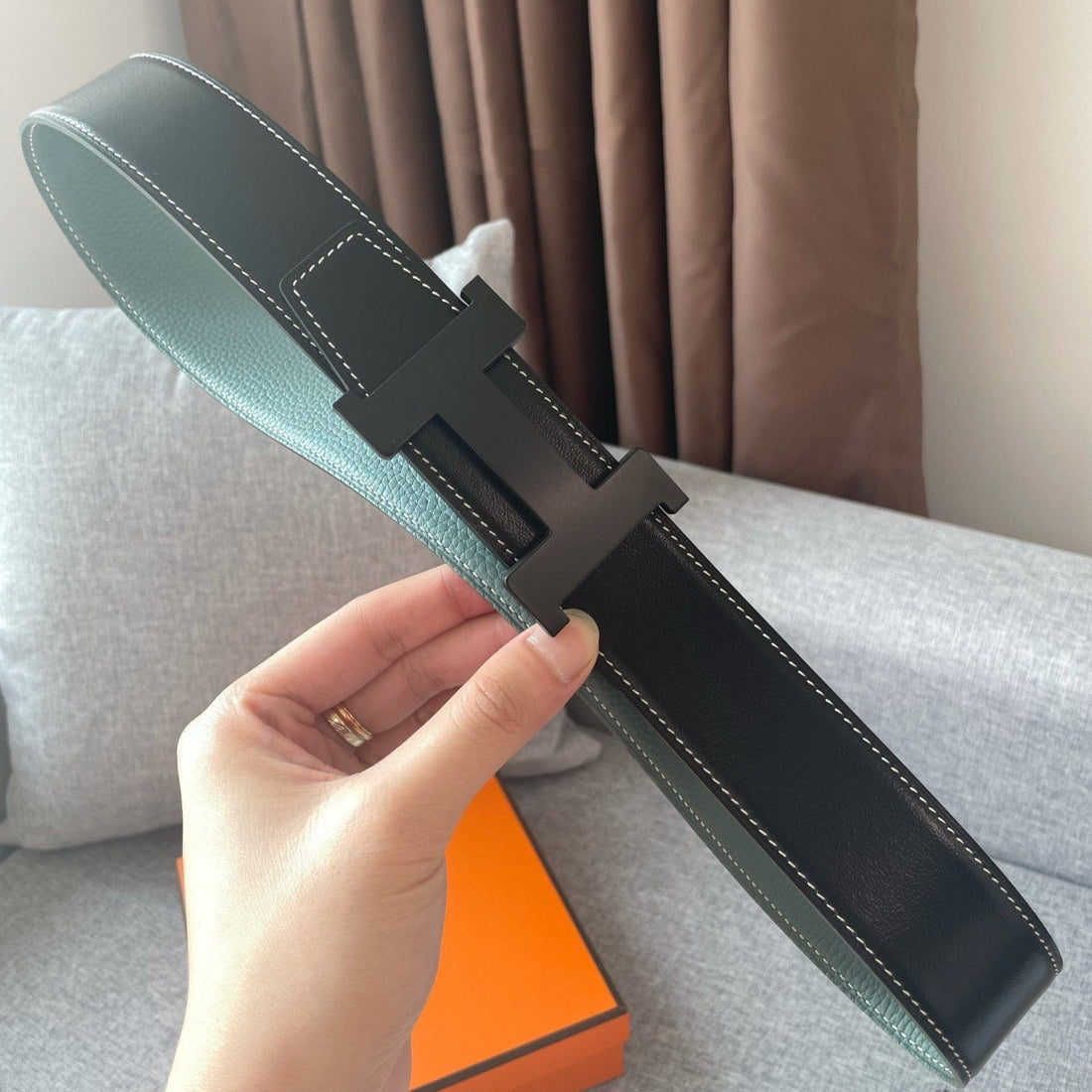 H CONSTANCE REVERSIBLE BELT 38MM BLACK BUCKLE BLACK GREEN LEATHER