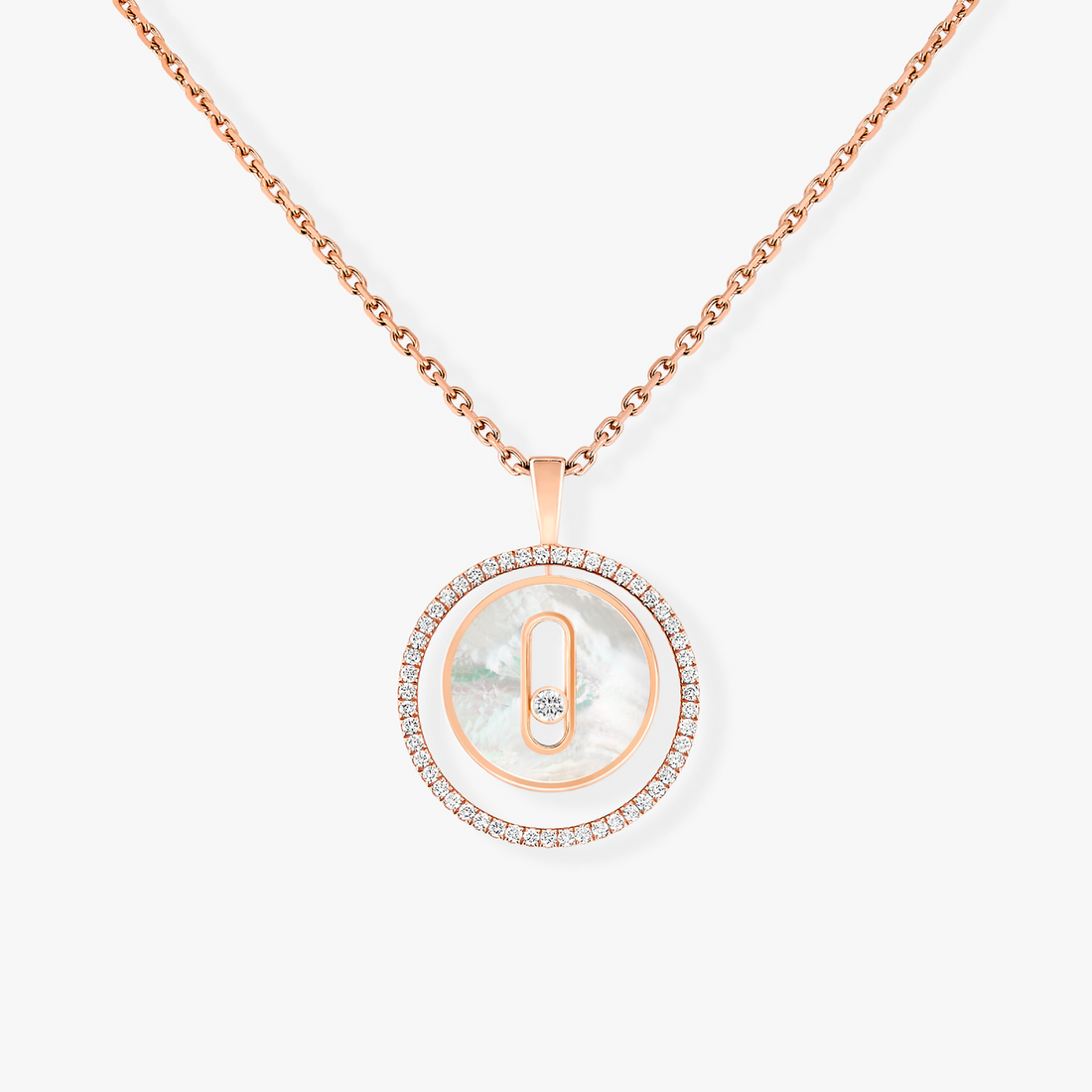 LUCKY MOVE 1 DIAMOND WHITE MOTHER OF PEARL PINK GOLD DIAMOND NECKLACE