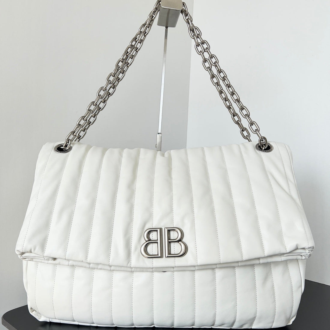 MONACO BAG 32 IN WHITE QUILTED THIN CALFSKIN SILVER HARDWARE