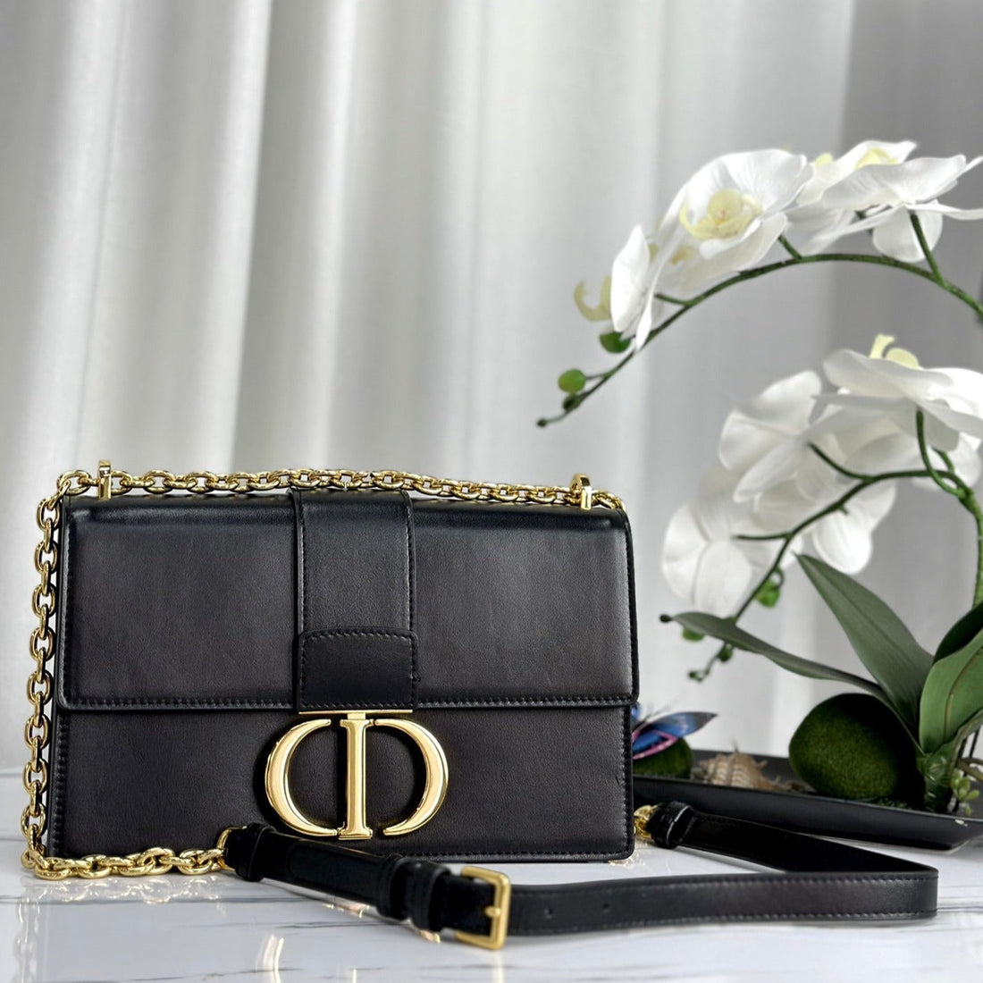 MONTAIGNE 19 HANDBAG IN BLACK CALFSKIN