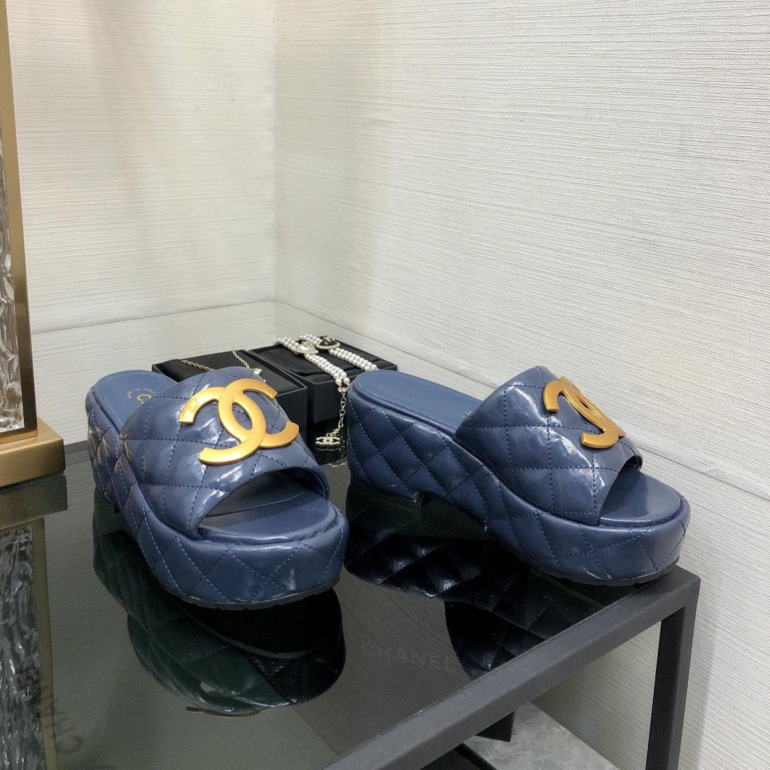 mule sandal 95 blue quilted waxed leather