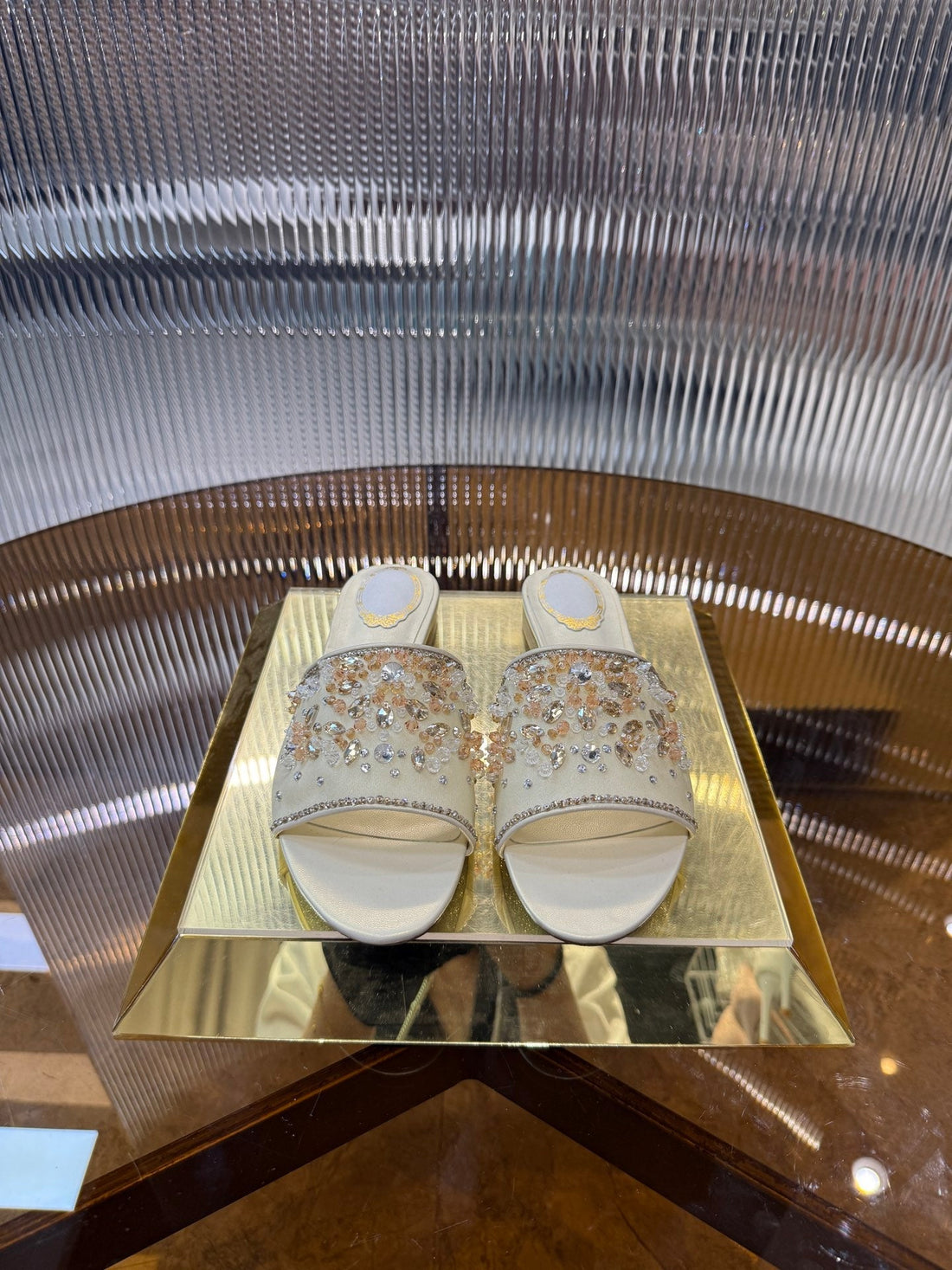 RC 25C Butterfly Flower Flat Sandals Slippers Sliver Sheepskin Rhinestone 275770