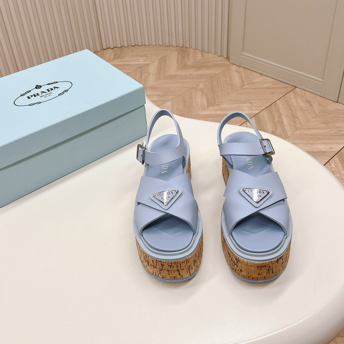 PRA WEDGE PLATFORM SANDALS SAPPHIRE CALFSKIN