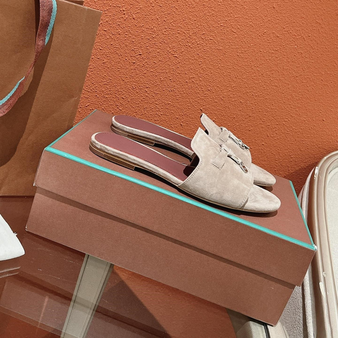 Summer Charms Sandals Mule Beige Ostrich Brown Lambskin