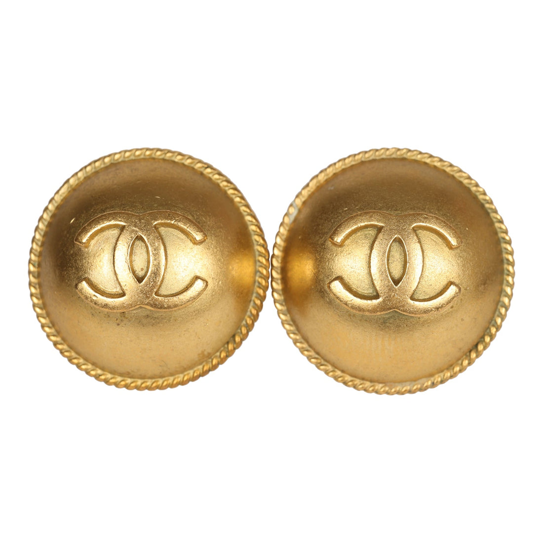 Vintage Chanel 24K Gold Plated CC Round Button Clip On Earrings