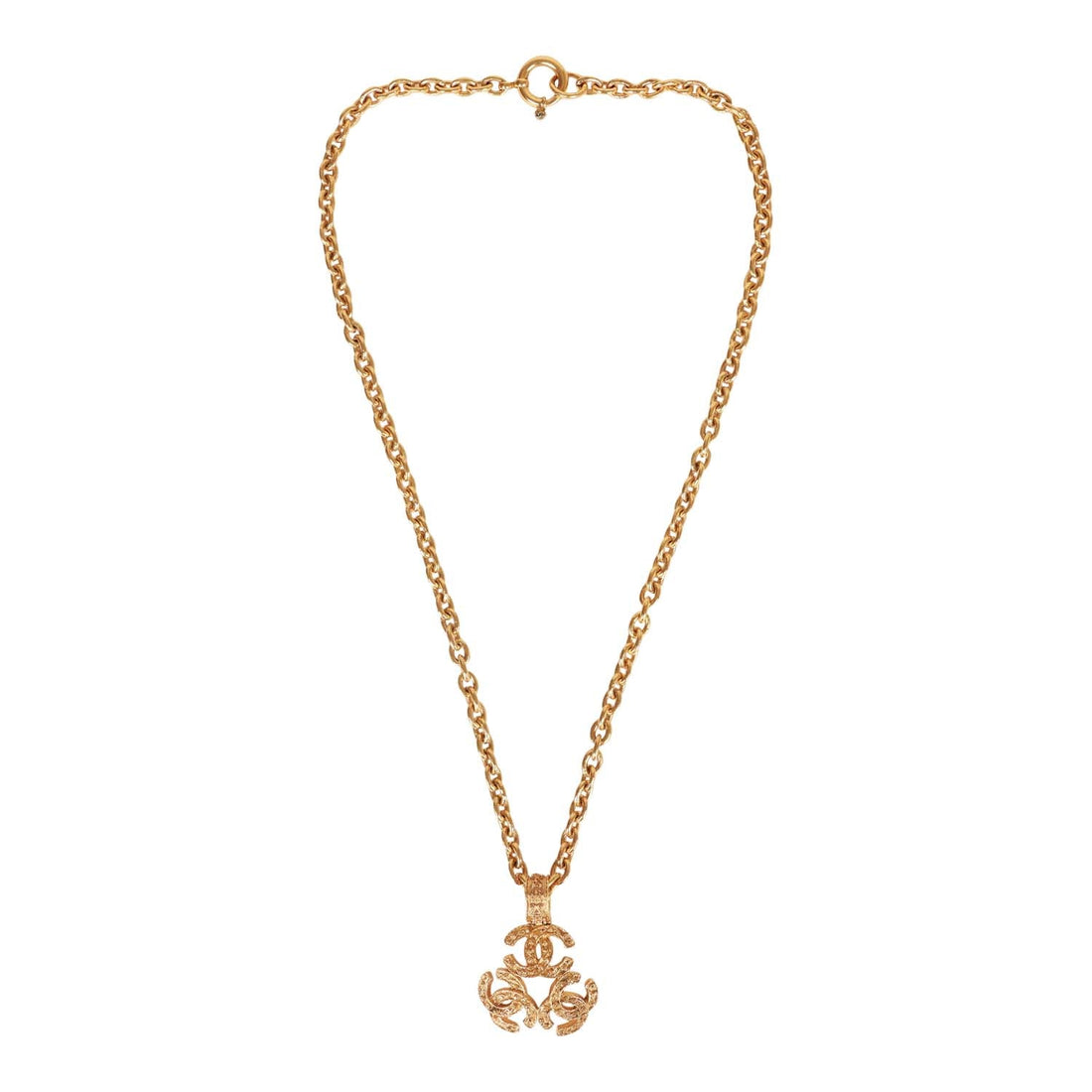 Vintage Chanel 24K Gold Plated Triple Interlocking CC Pendant Necklace