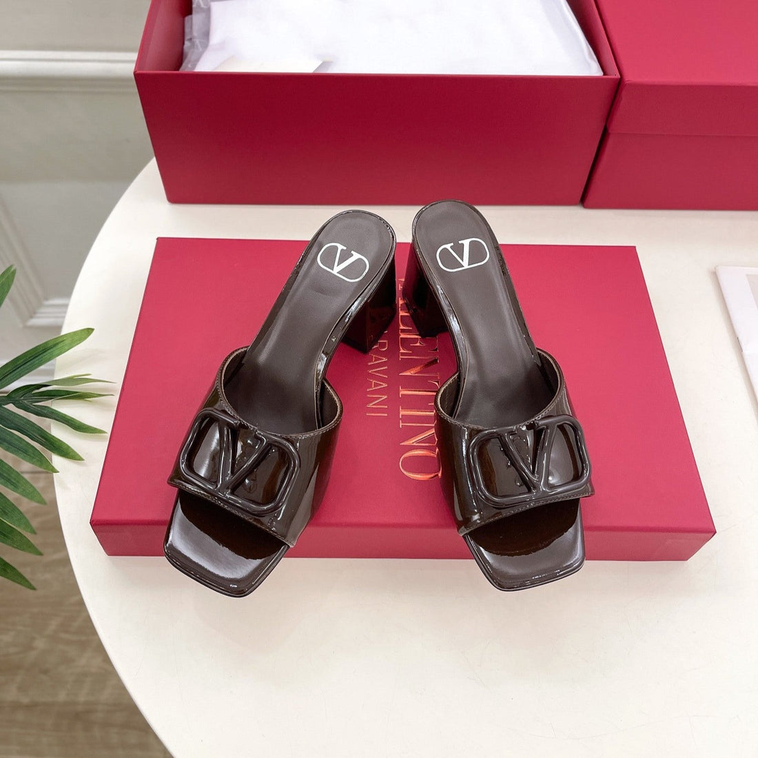 Vlogo 60 Patent Sandal Brown Leather
