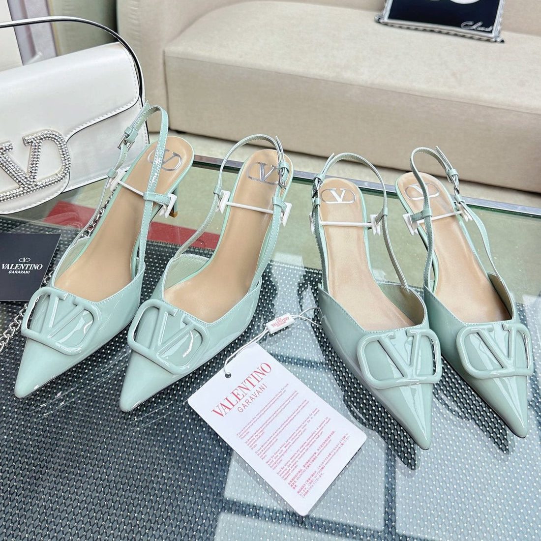 VLOGO SLINGBACK PUMP IN POWDER BLUE CALFSKIN LEATHER