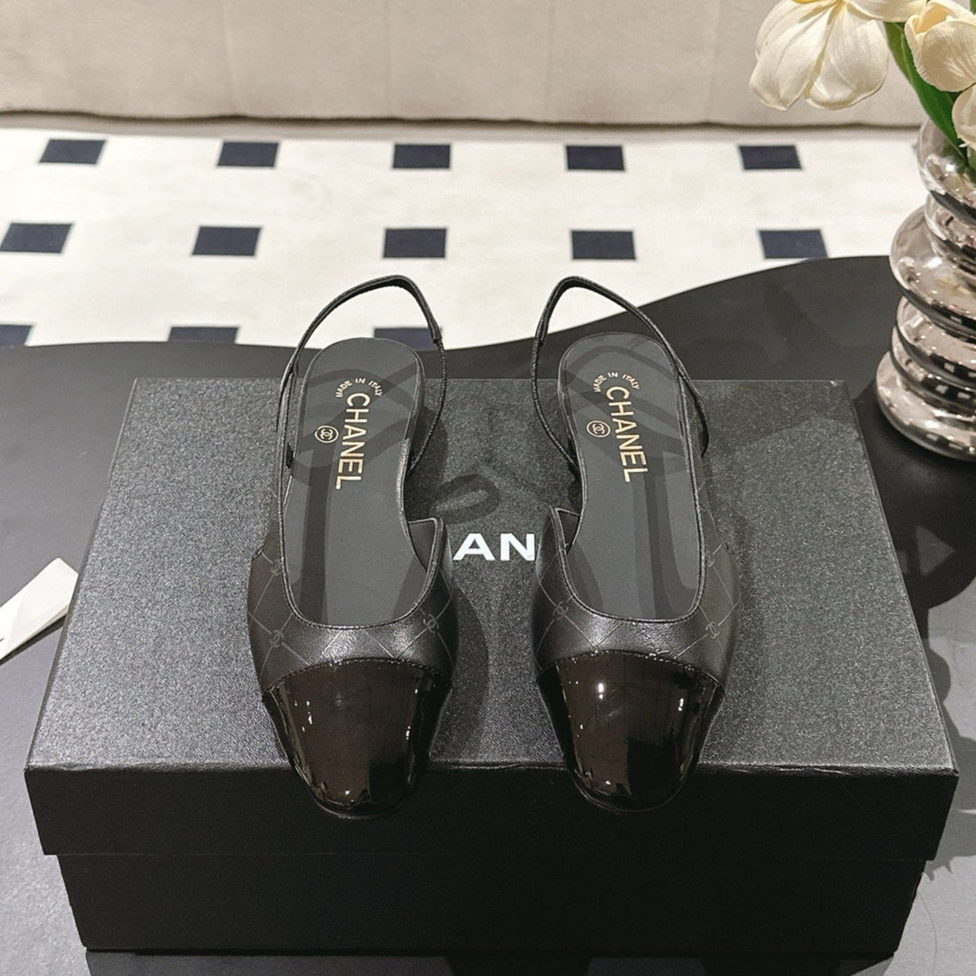 CC 25 Slingback Flats Black Embossed Leather 237492