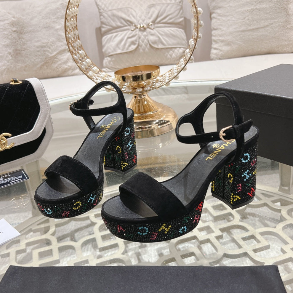 CC 25C 10CM Mid Heed Sandals Black Suede 213328