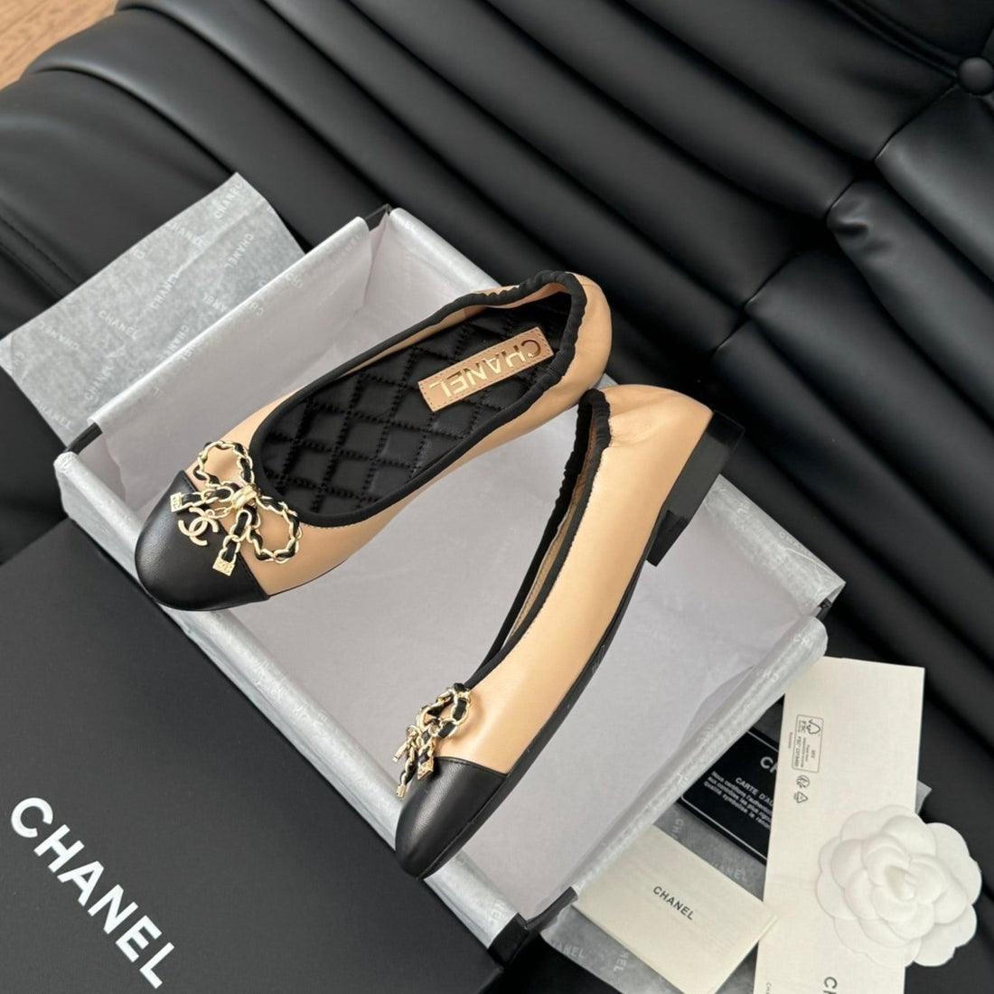 CC Ballet Flats In Beige Mix Black Quilted Lambskin 949713