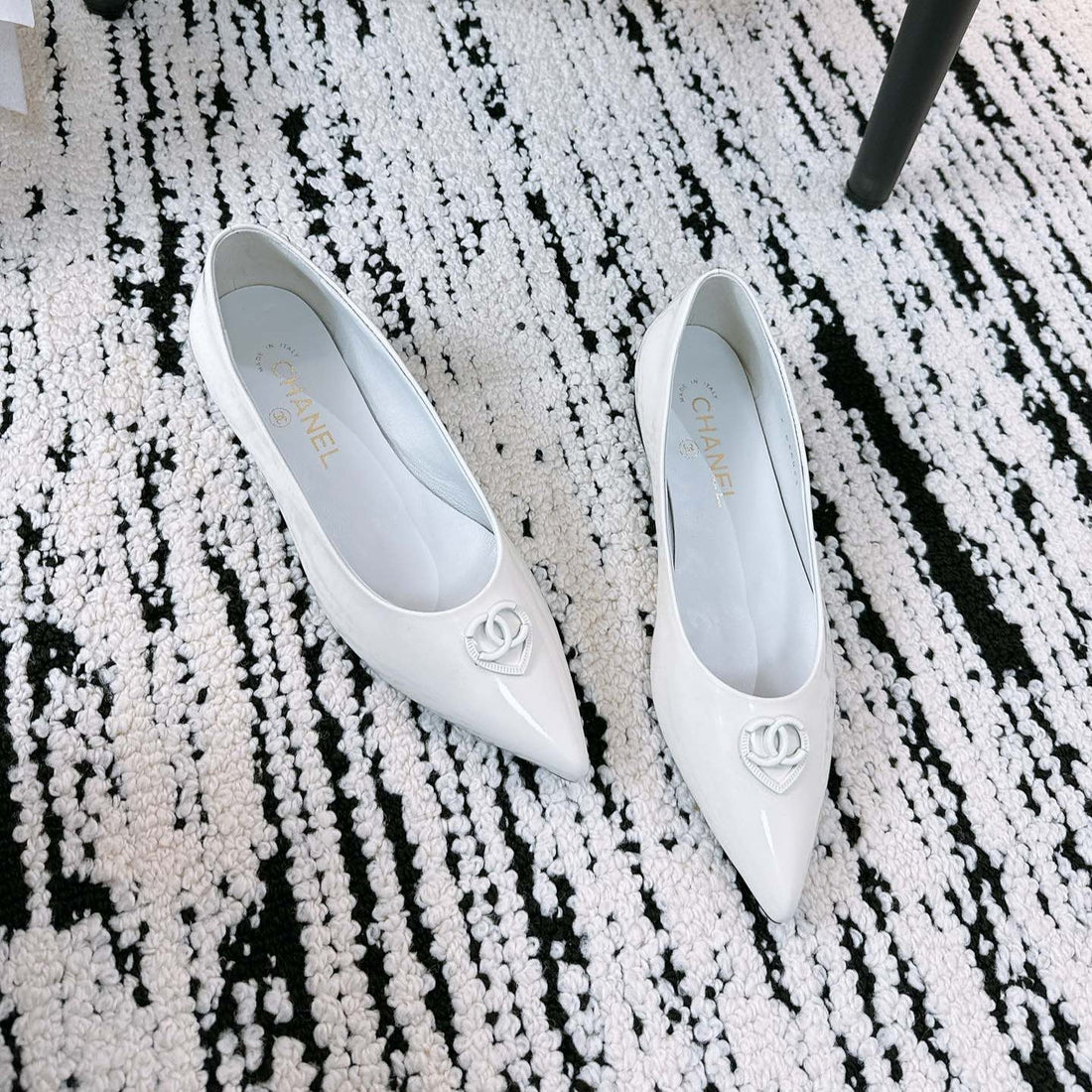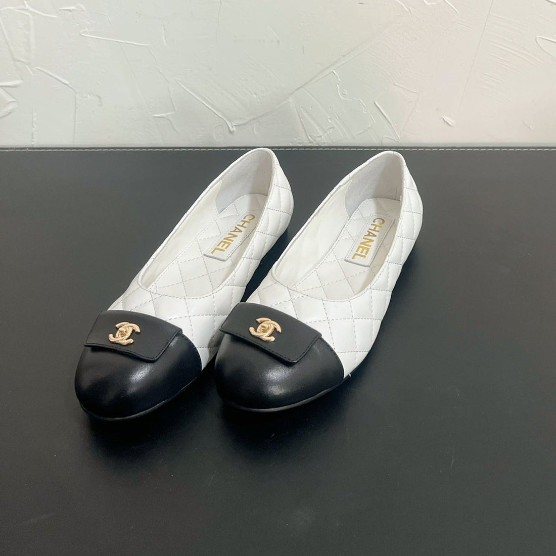 CC Ballet Flats In White Mix Black Quilted Lambskin 949711