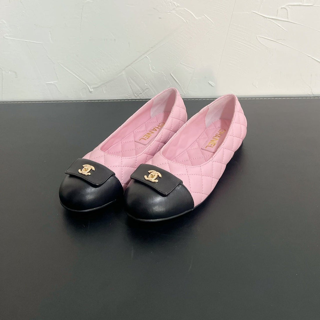 CC Ballet Flats In Pink Mix Black Quilted Lambskin 949714