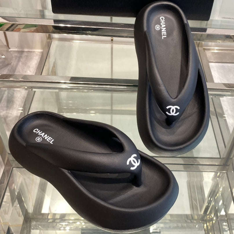 CC FLAT MULE IN BLACK WOOL TWEED AND CALFSKIN GOLD HARDWARE