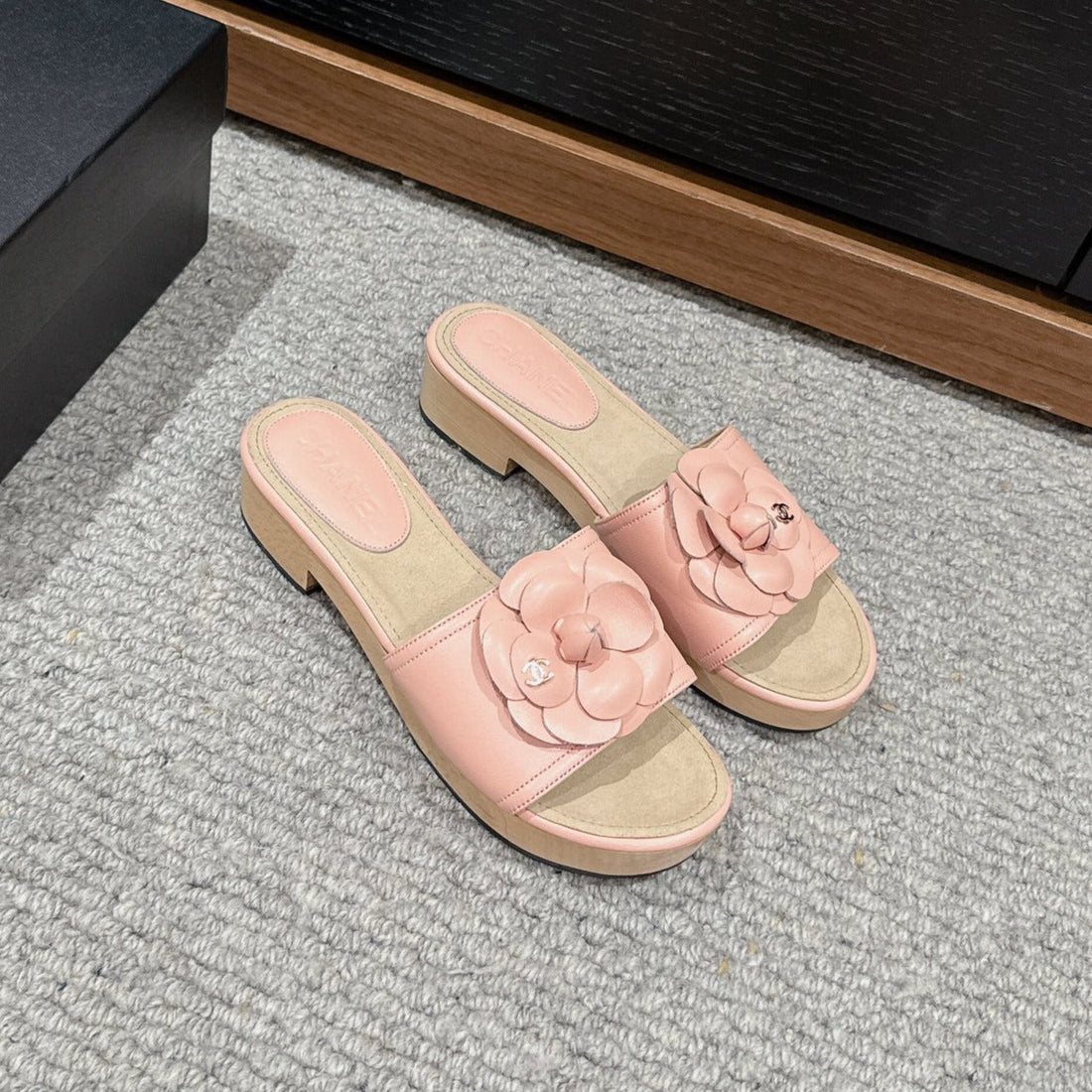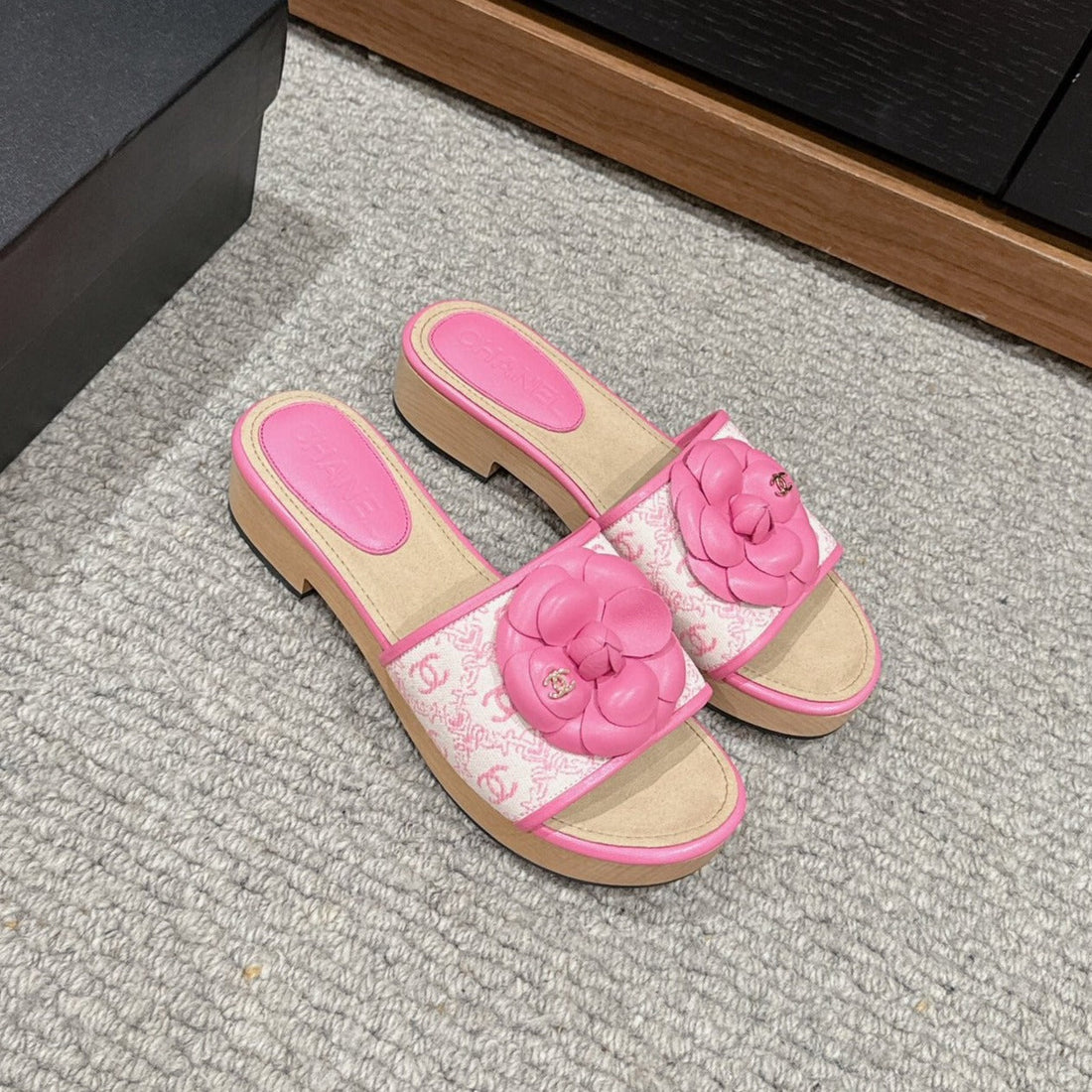 cc sandal flower pink calfskin