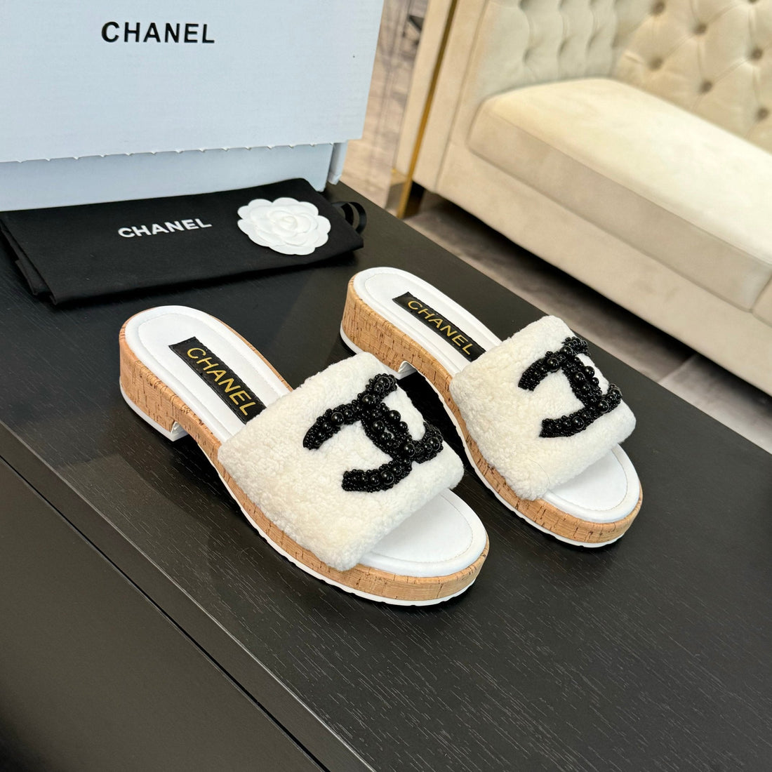 CC SLIPPERS WITH SILK BOW IN BEIGE ALMOND COWHIDE