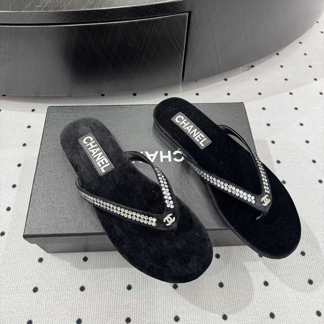 CC Thong Slippers In Dark Beige Lambskin 147050