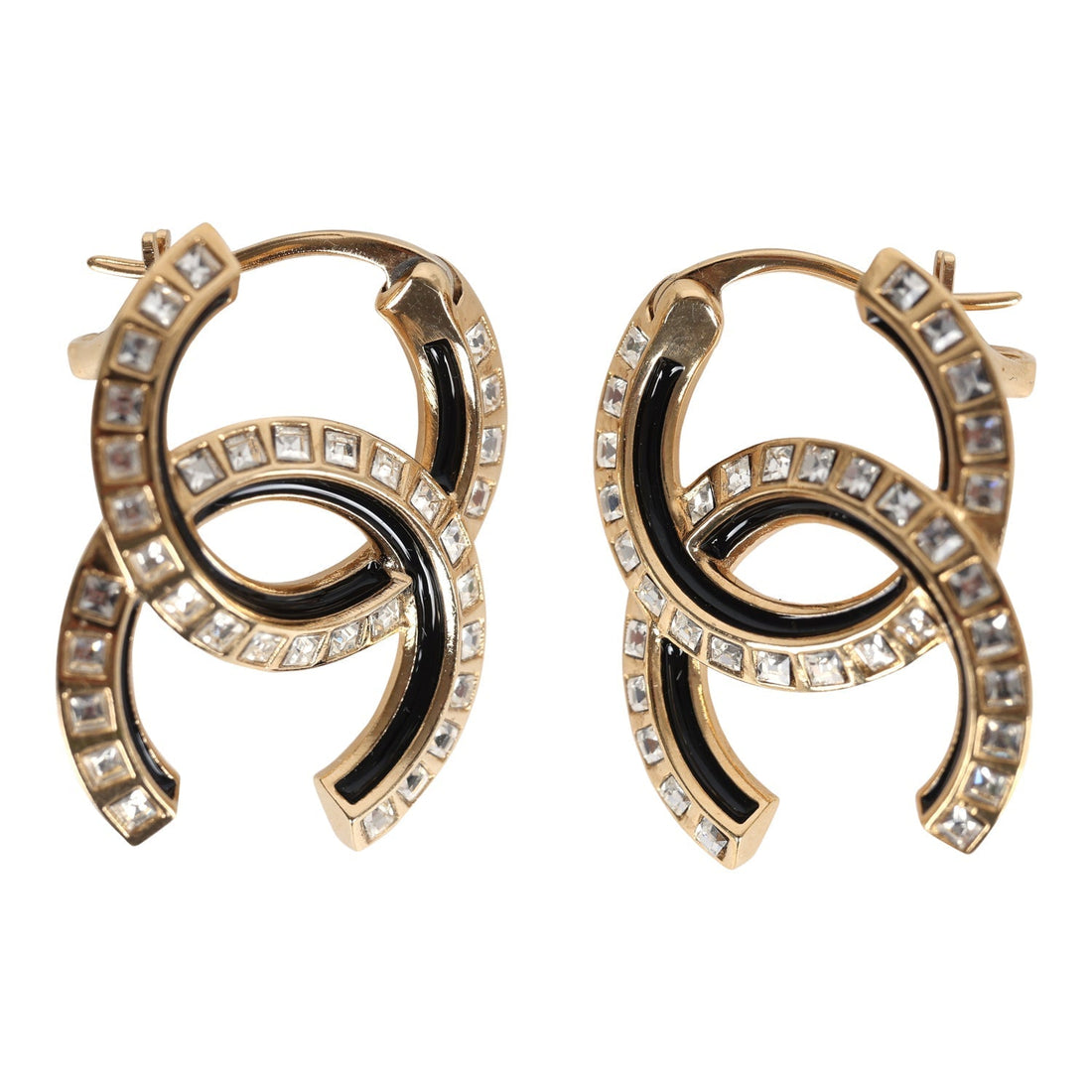 Chanel Crystal CC Earrings Black Enamel & Gold Hardware