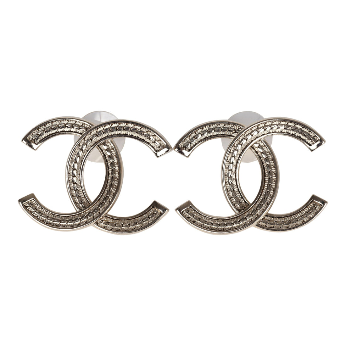Chanel Large CC Stud Earrings Gold Tone Metal