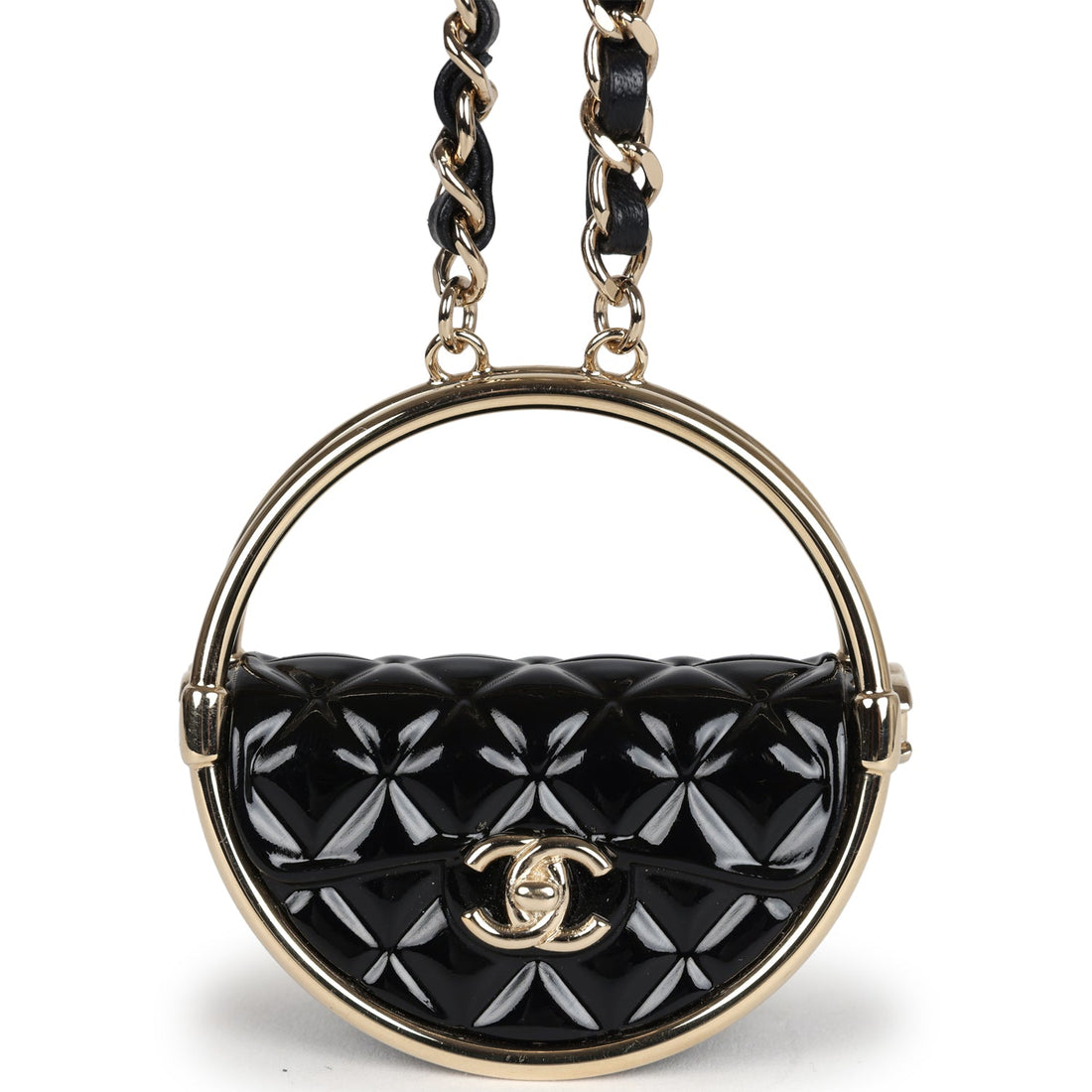 Chanel Hula Hoop Hula Hoop Charm Necklace Black Enamel/Light Gold Tone Hardware