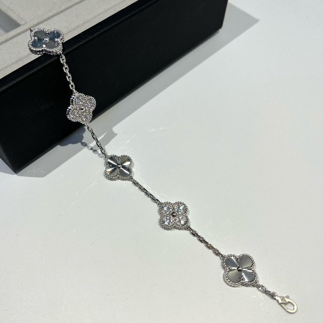 CLOVER 5 MOTIF SILVER DIAMOND BRACELET