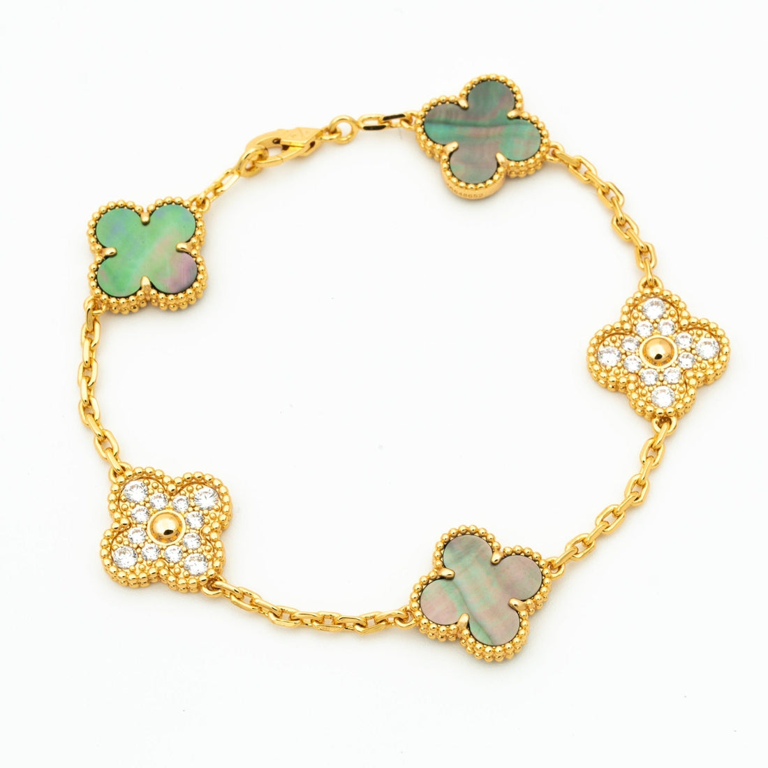 CLOVER BRACELET 5 MOTIF MOP AND DIAMOND