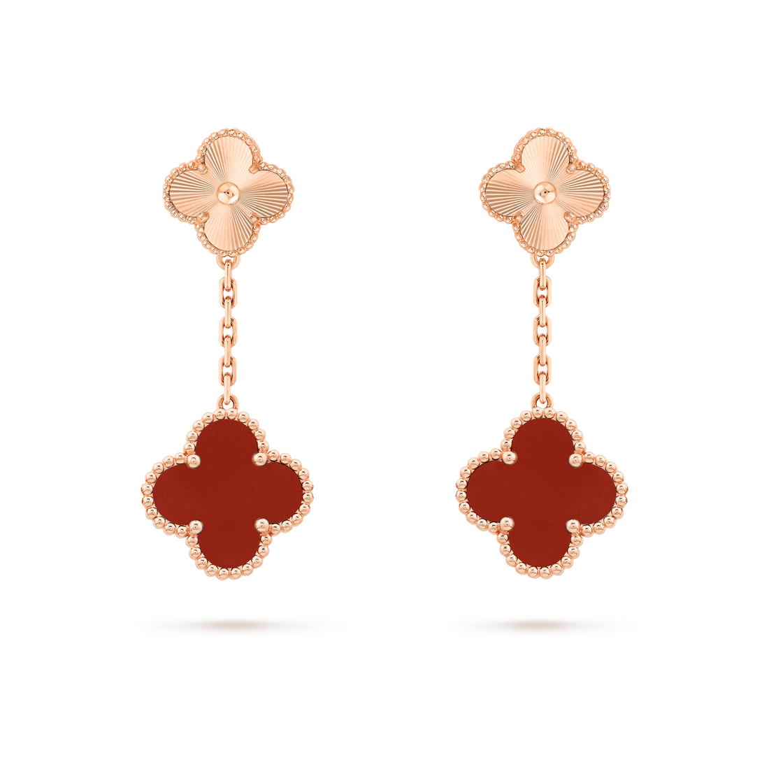 CLOVER EARRINGS CARNELIAN 4 MOTIFS PINK GOLD