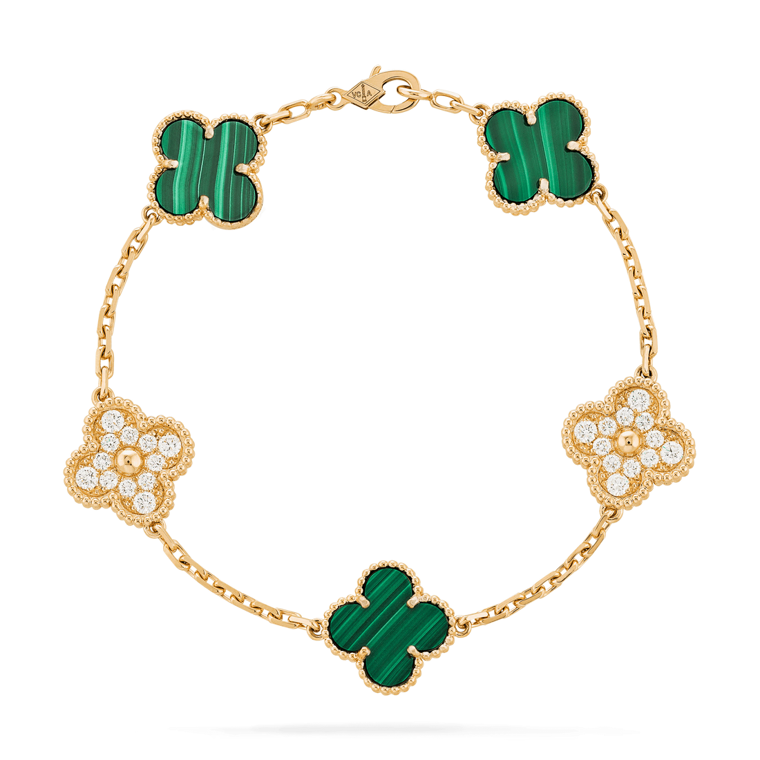 CLOVER MALACHITE DIAMOND BRACELET 5 MOTIF