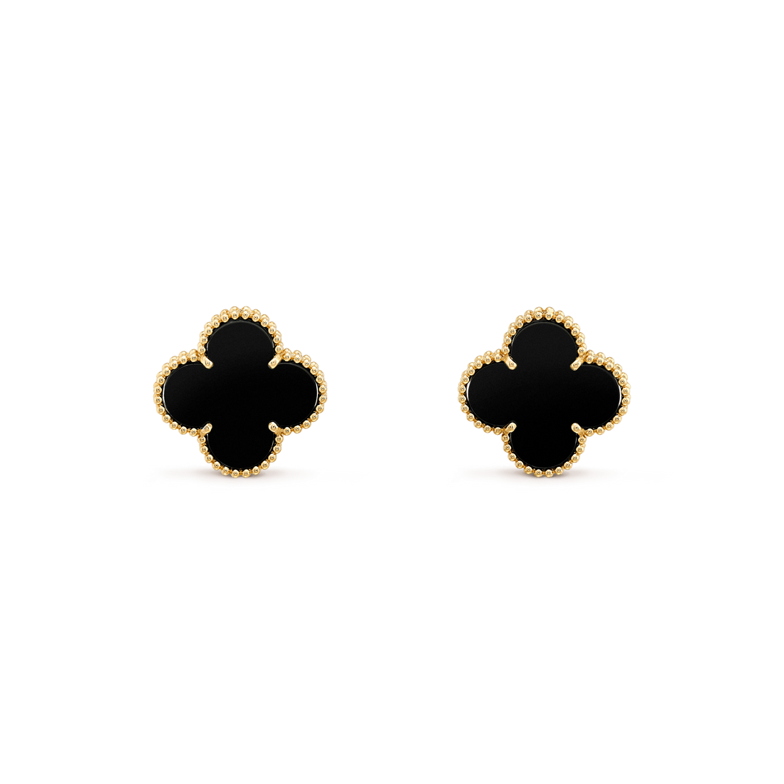 CLOVER MEDIUM GOLD ONYX STUD EARRINGS