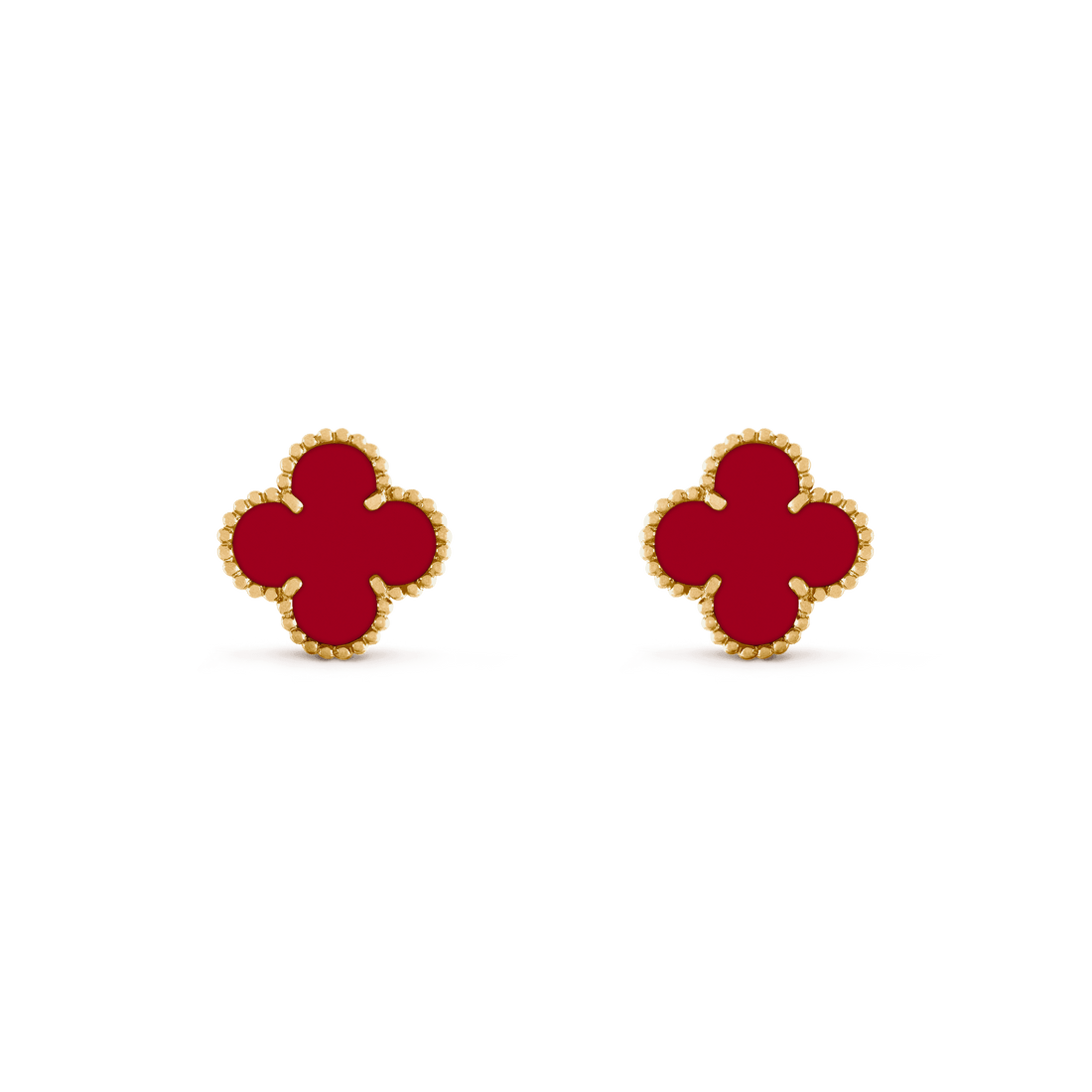 CLOVER MEDIUM GOLD CARNELIAN STUD EARRINGS