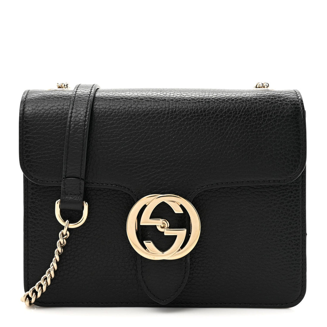 Dollar Calfskin Small Interlocking G Shoulder Bag Black