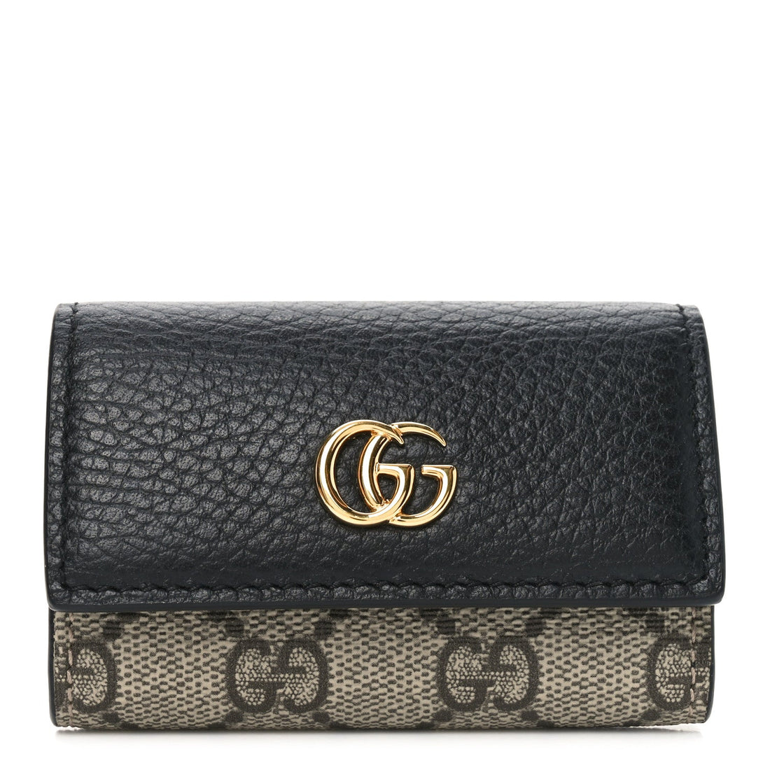 Dollar Calfskin GG Supreme Monogram GG Marmont 6 Key Holder Case Black Beige Ebony