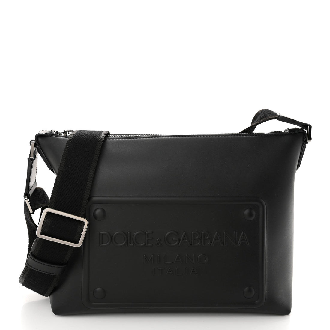 DOLCE GABBANA Calfskin Embossed DG Logo Shoulder Bag Black