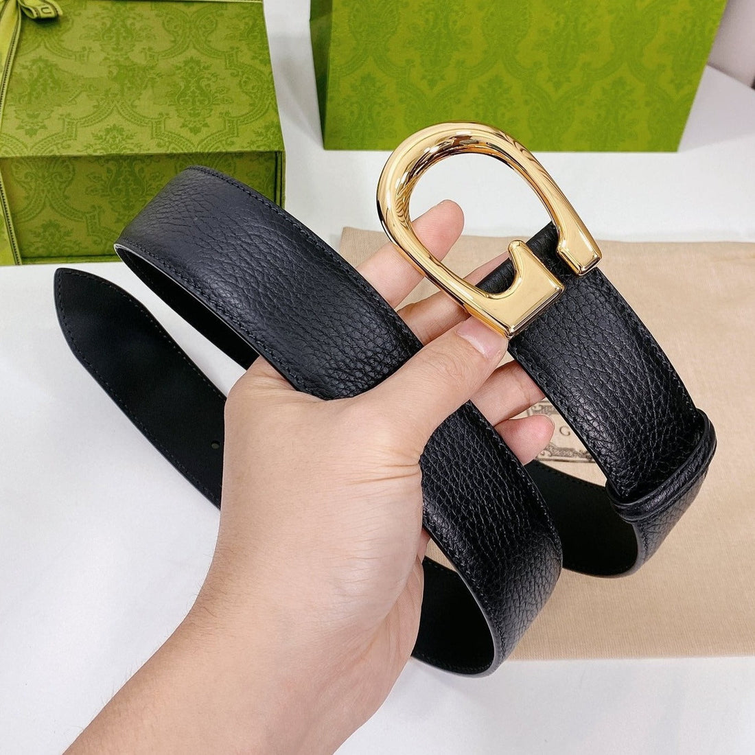 G BELT GOLD SQUARE INSTALL BUCKLE BLACK LEATHER 3.5CM