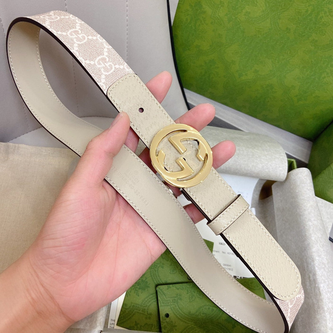GG BELT 40MM GOLD BUCKLE BEIGE CANVAS