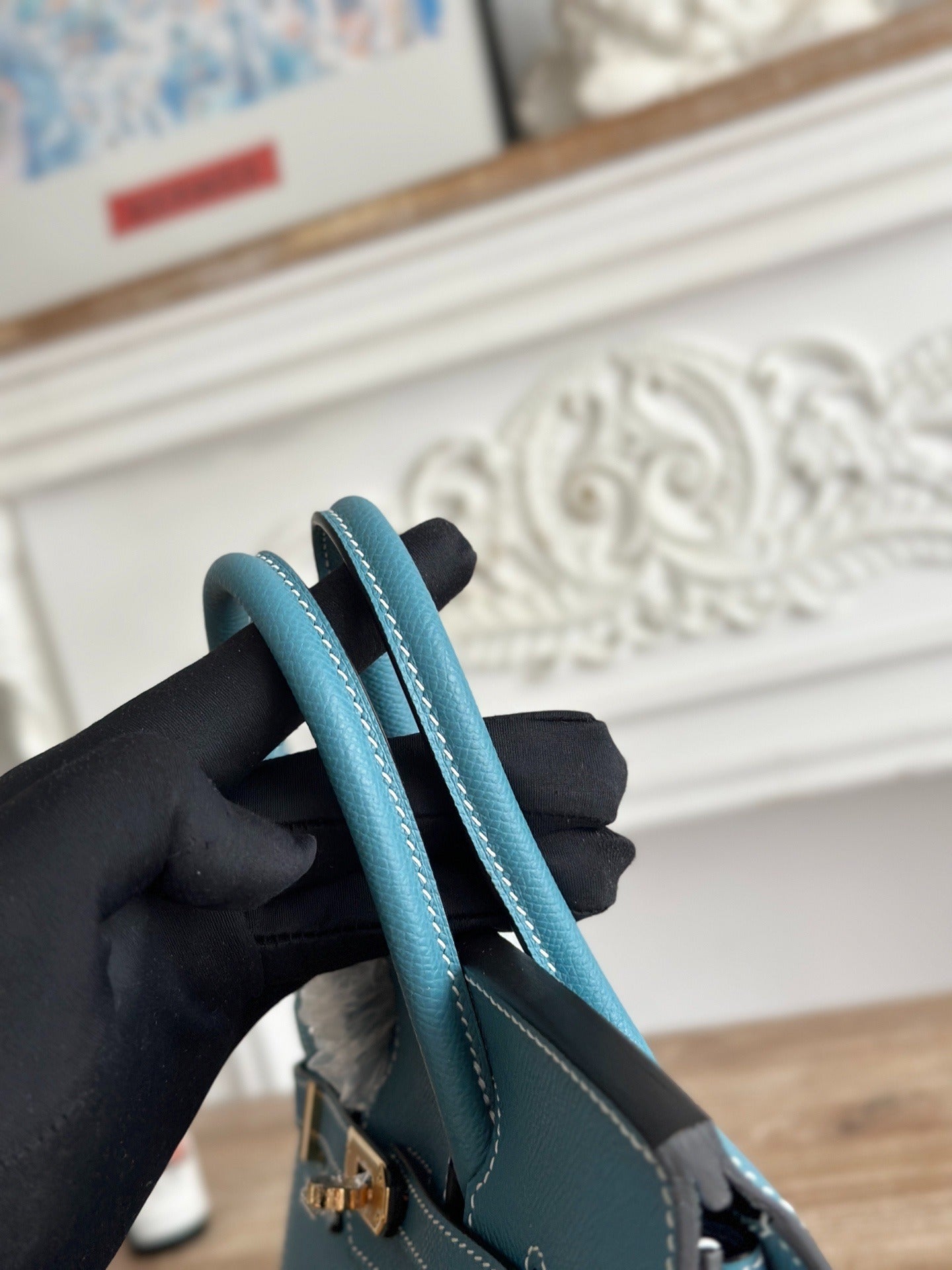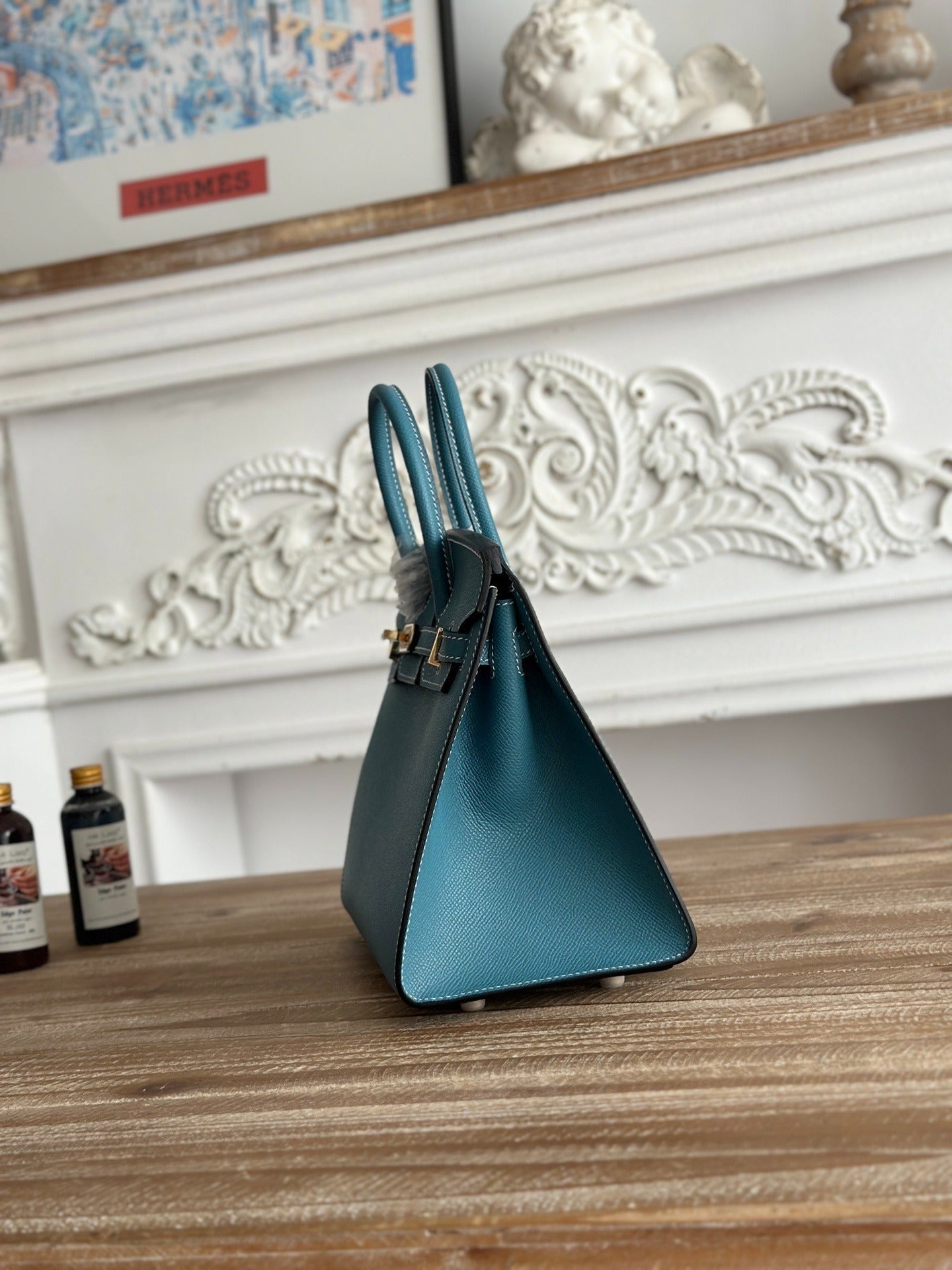 Birkin Style Handbag 25cm | Imported Epsom Leather | Denim Blue, Gold Hardware