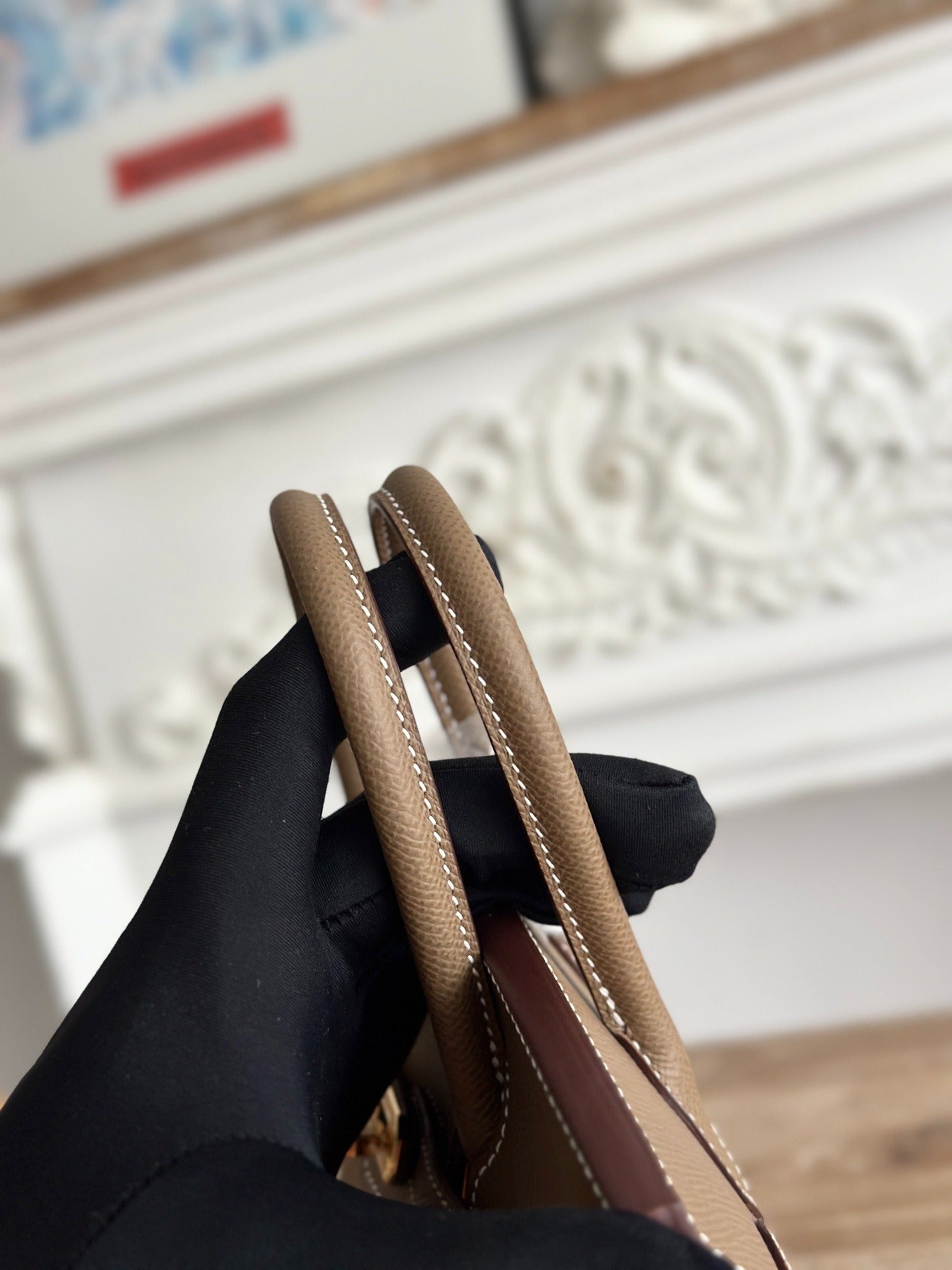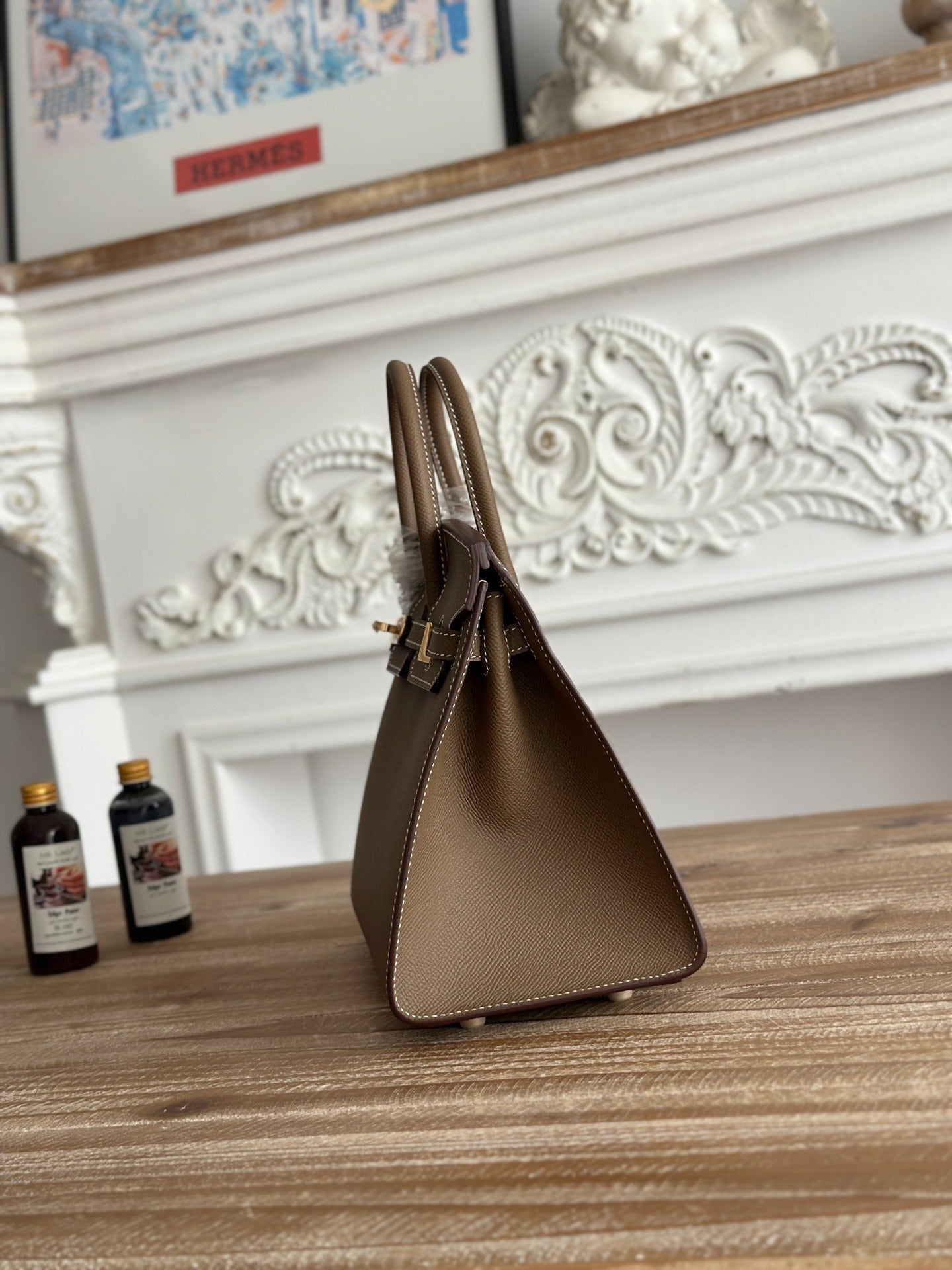 Birkin Style Handbag 25cm | Imported Epsom Leather | Large Gray, Gold Hardware