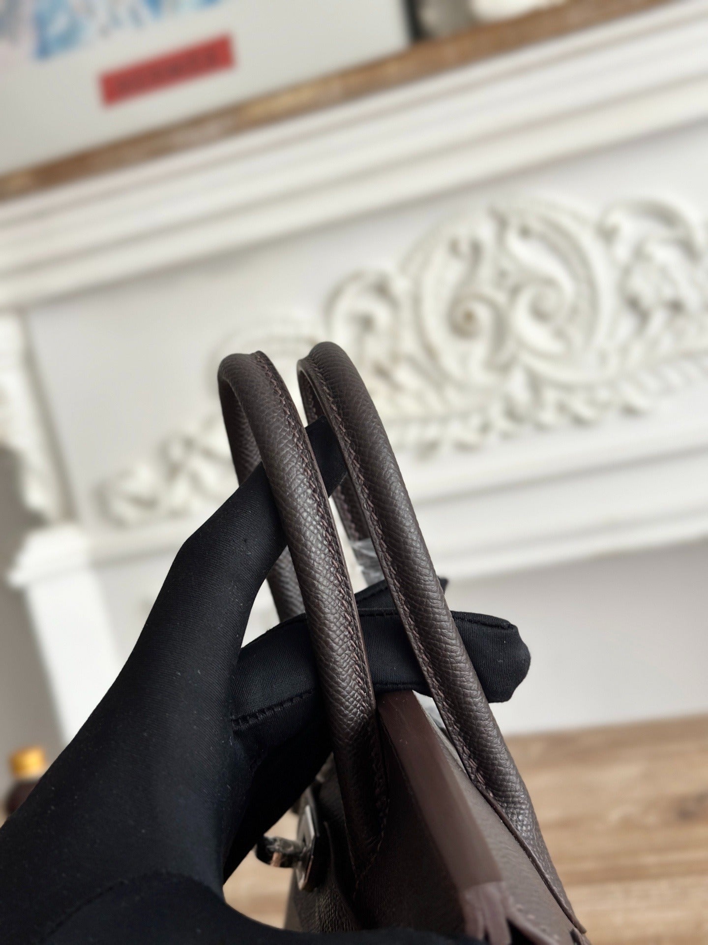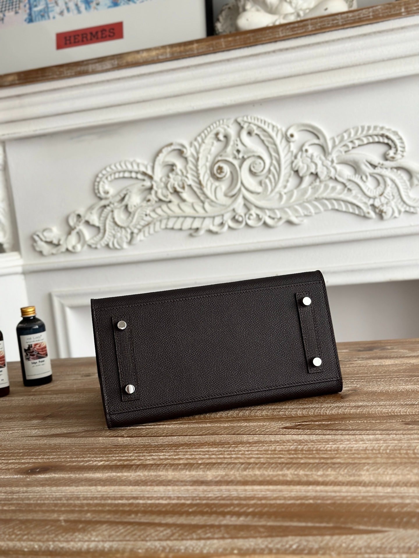 Birkin Style Handbag 25cm | Imported Epsom Leather | Rich Brown, Silver Hardware