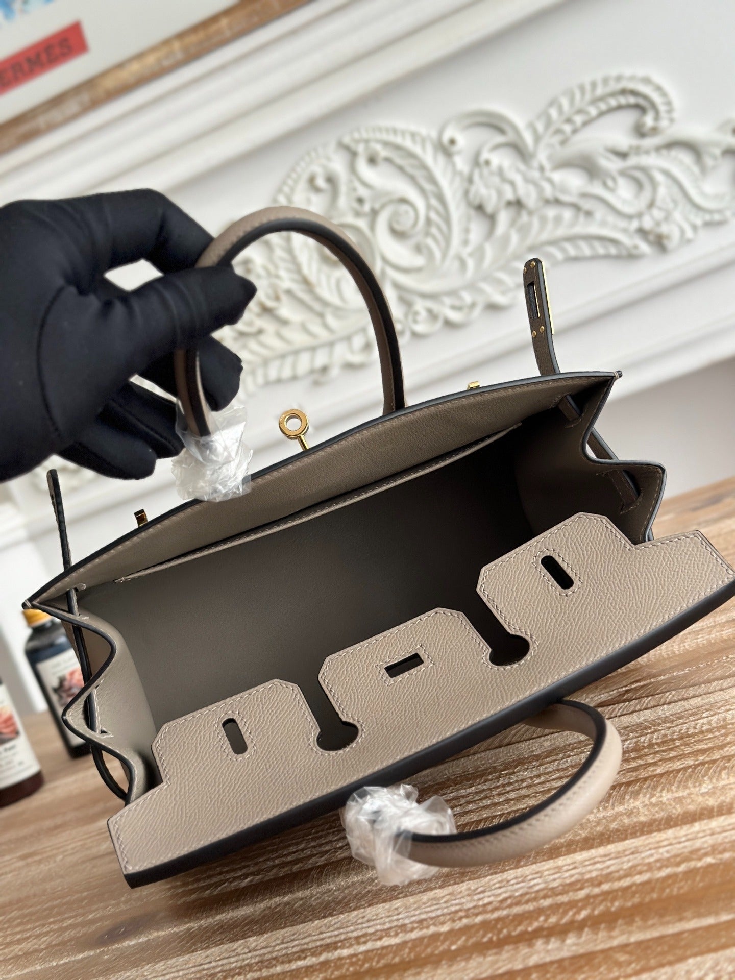 Hermes Birkin Style Handbag | 25cm Epsom Leather Tote | Asphalt Gray, Gold Hardware