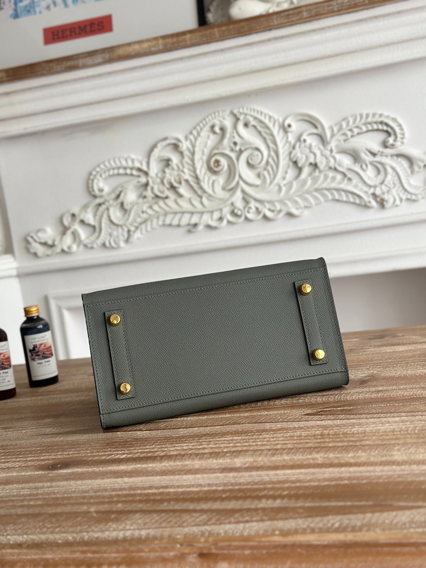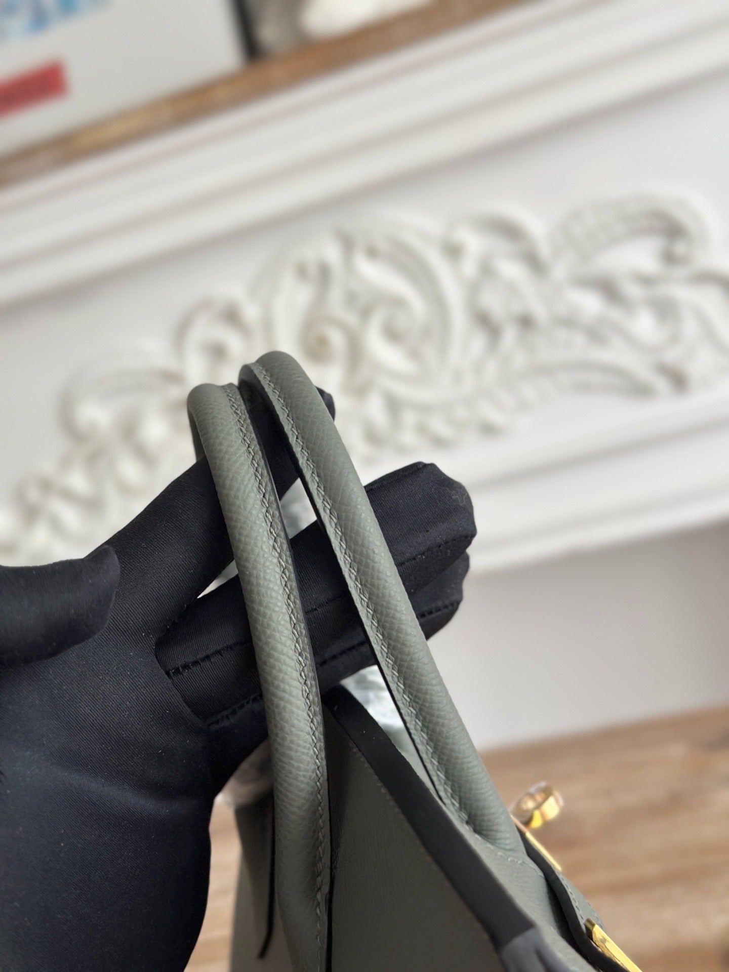Hermes Birkin Style Handbag 25cm | Imported Epsom Leather | Pewter Grey