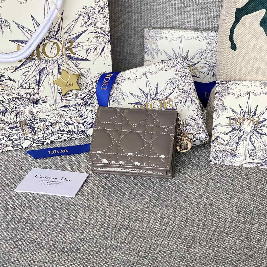 CD Caro 11cm Compact Wallet Shiny Dark Beige Calfskin