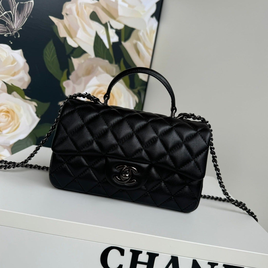 24c mini flap bag 20cm with top handle pink violet calfskin
