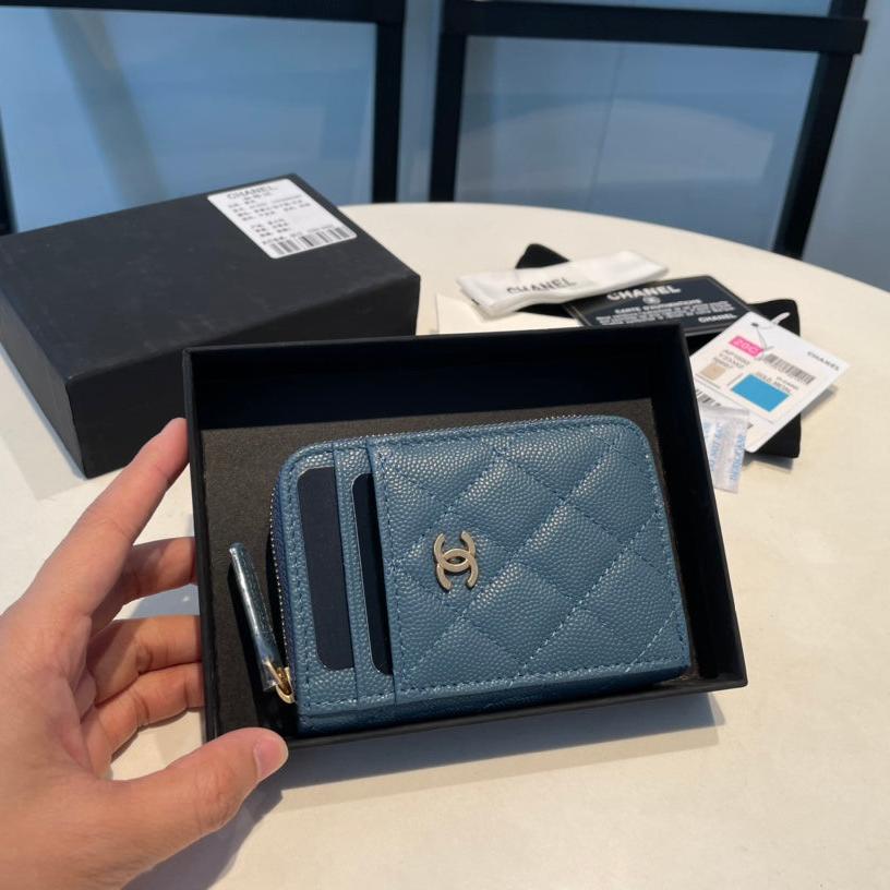 CC ZIPPED COIN BASIC PURSE 11 SAPPHIRE CALFSKIN GOLD ICON
