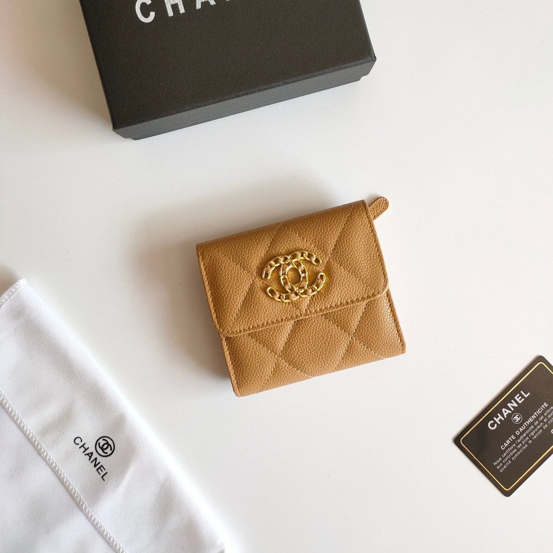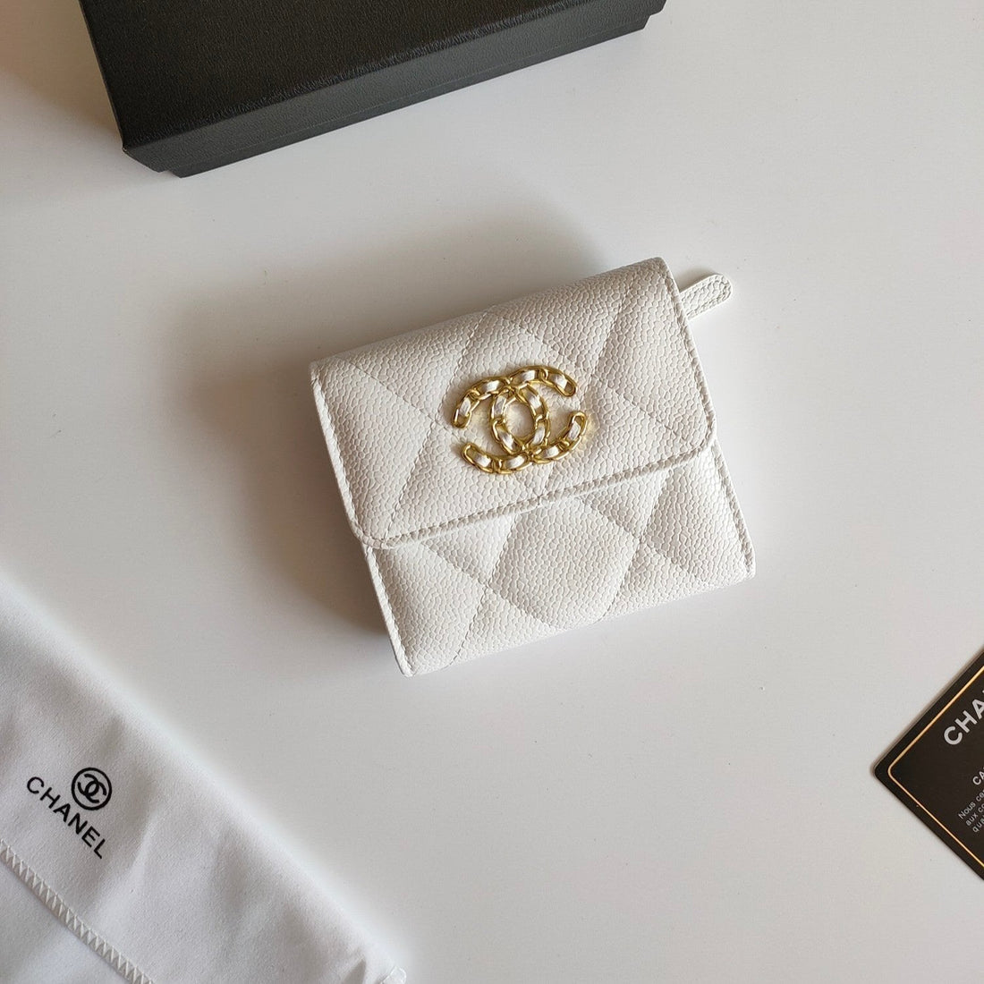 CC SQUARE PURSE 12 WHITE GRAINED CALFSKIN GOLD ICON