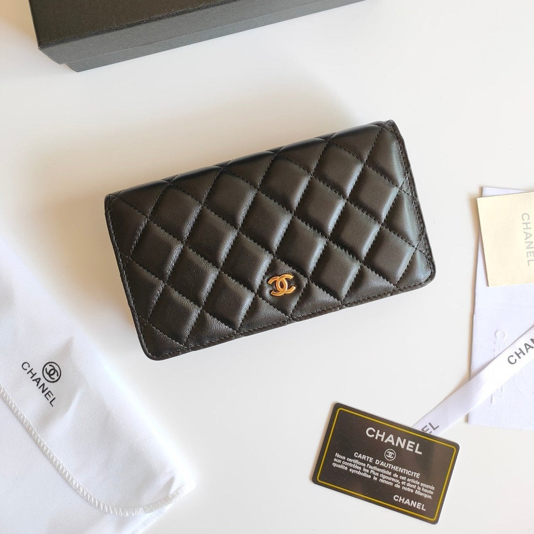 CC ZIPPED LONG PURSE 19 BLACK CALFSKIN GOLD ICON